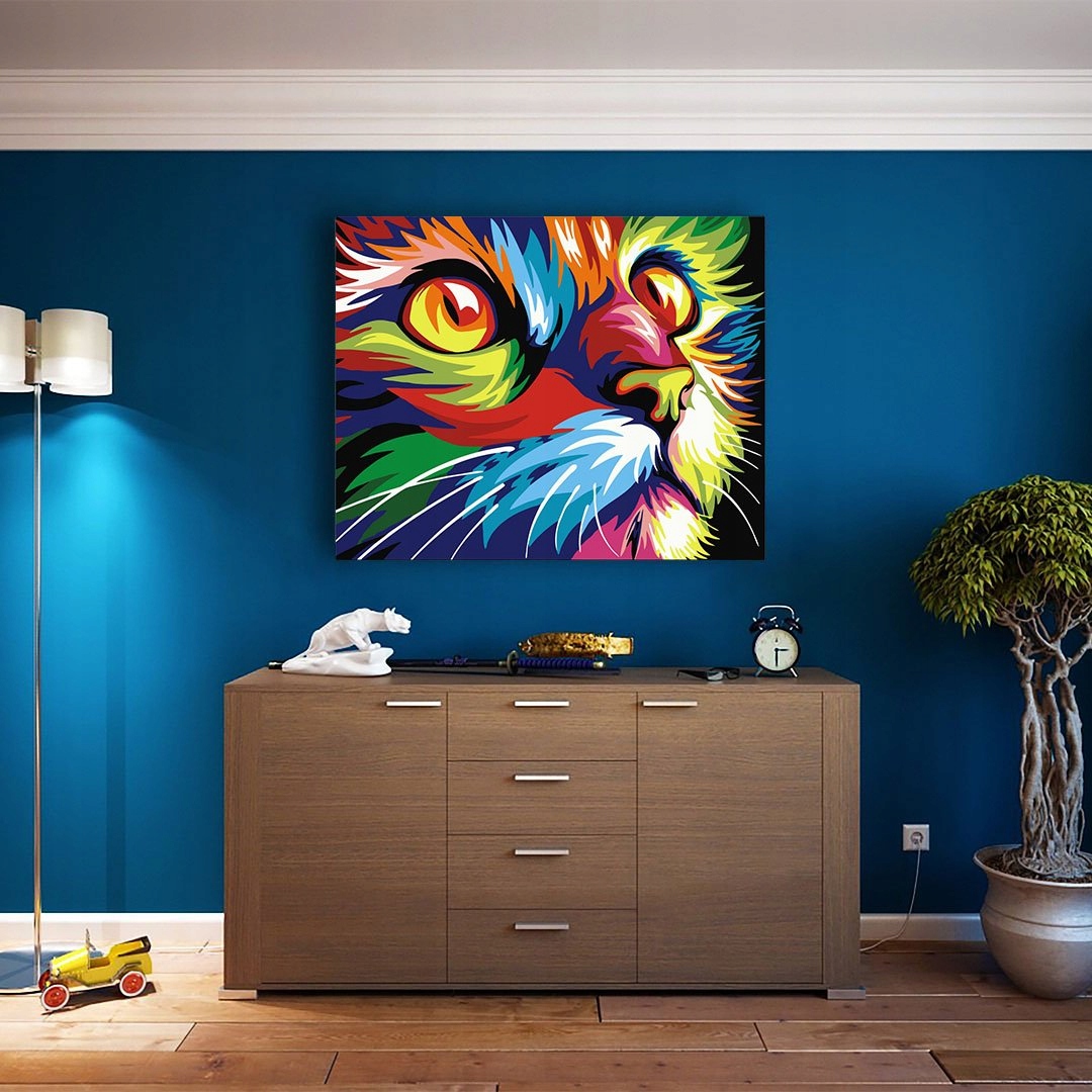 Картину за номерами «Різнобарвний кіт» можна придбати себі або на подарунок b> для підлітків або дорослих, незалежно від віку. Робота над його розфарбовуванням неодмінно подарує вам масу приємних моментів, а вже виконана робота стане чудовою і ефектною ідеєю для подарунка, яким ви зможете прикрасити свою квартиру чи офіс .