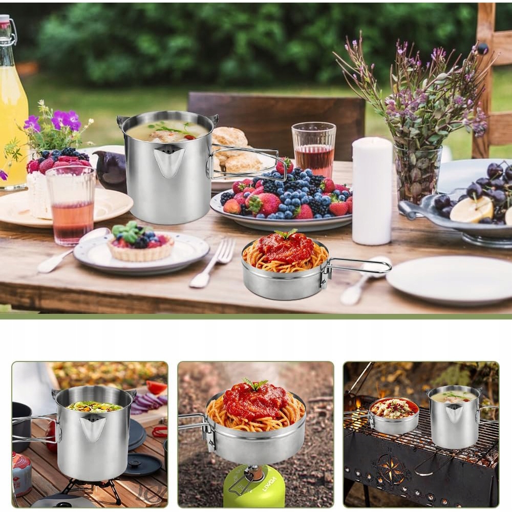 Набір горщиків, портативний кемпінг з нержавіючої сталі кемпінгу
