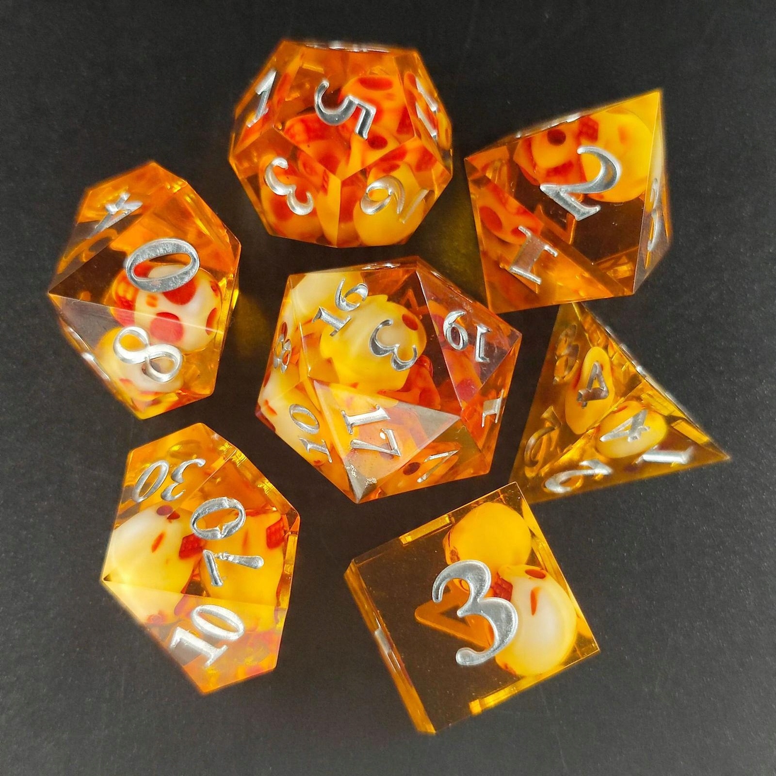 Polyhedral: поставляється з 7 різними кубиками: D4, D6, D8, D12, D20, D10 (номер 0-9), інший D10 (номер 00-90).