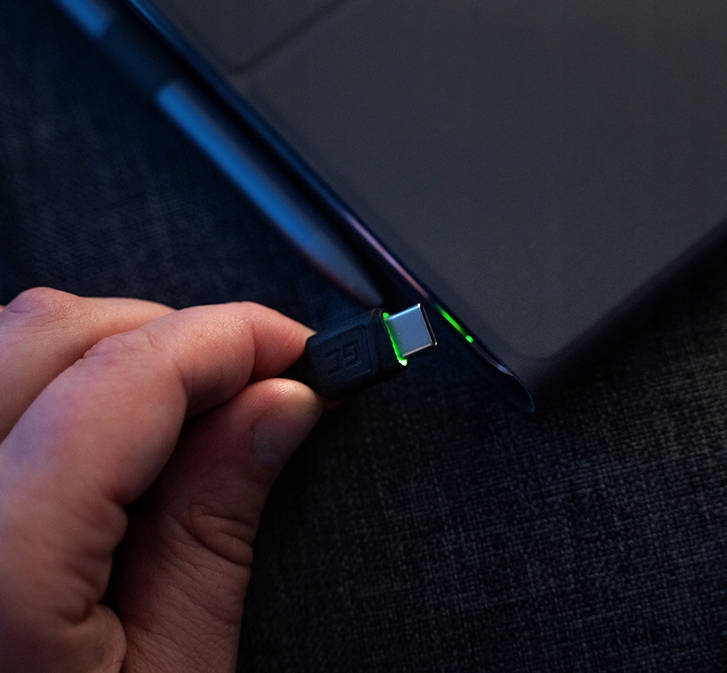 Щоб збільшити зручність використання кабелів GC Ray USB-C, ми об’єднали їх в універсальний набір із трьох кабелів максимальної довжини. Кабелі також оснащені ніжним зеленим підсвічуванням на роз’ємі USB-C. Завдяки цьому їх надзвичайно легко знайти в темряві та під’єднати до свого пристрою, а коли вони під’єднані до багатопортового зарядного пристрою, вони виглядають надзвичайно футуристично.