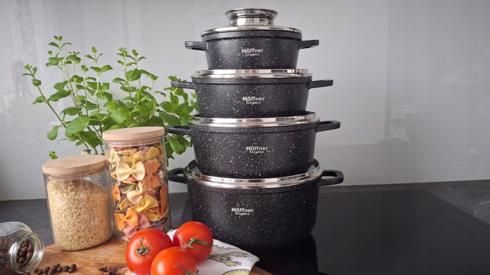 Не чекайте! Hoffner 7835 - це ідеальне поєднання зручності, стилю та довговічності. Поліпшіть свою кухню та насолоджуйтесь приготуванням їжі на найвищому рівні. Замовте зараз і дізнайтеся, скільки переваг приносить цей унікальний набір горщиків!