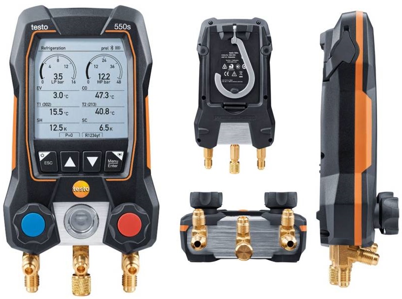 З набором ви одразу готові виконувати вимірювання, пов’язані з введенням в експлуатацію, обслуговуванням і обслуговуванням холодильні установки та установки кондиціонування повітря та теплові насоси: ви отримуєте інтелектуальний цифровий розподільник testo 550s з Bluetooth і блоком 2-ходового клапана, два дротові термінали для датчиків температури (NTC) і надійний транспортний кейс. Додаткові датчики Bluetooth, наприклад, для бездротового вимірювання температури та вакууму, доступні окремо.
