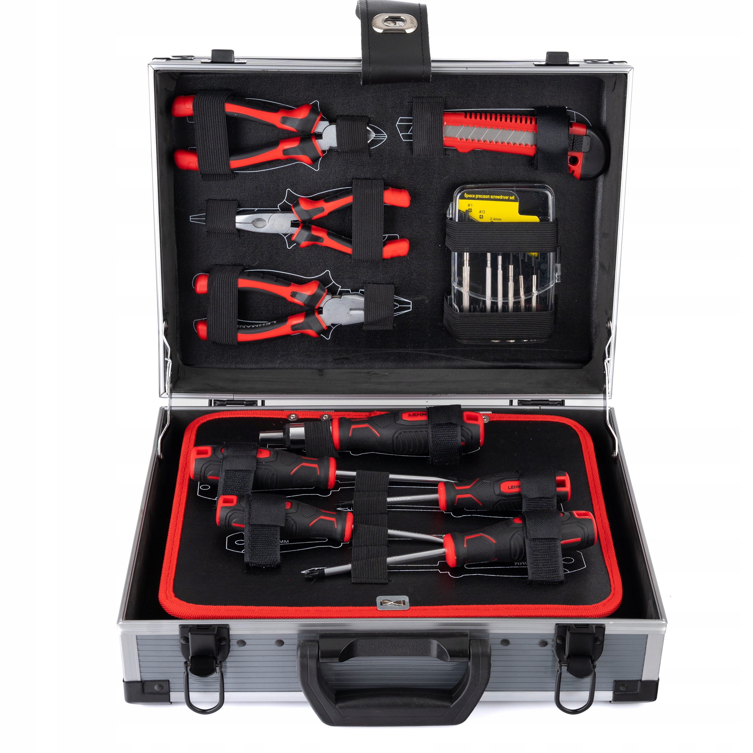 - 88 інструментів в одній валізі - повний набір для кожного ремонту. Містить гайкові ключі, плоскогубці, викрутки, насадки та тріскачку — усе, що вам потрібно для домашньої роботи, складання та саморобки. Ідеально підходить для дому, майстерні та гаража — завжди готовий до роботи.