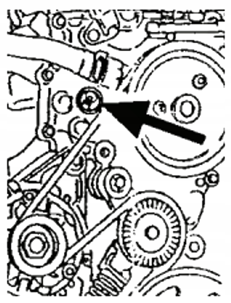 4. Встановіть новий болт зірочки та затягніть деталь, щоб зачепити диск ГРМ. 5. Зніміть утримуючий штифт натягувача.