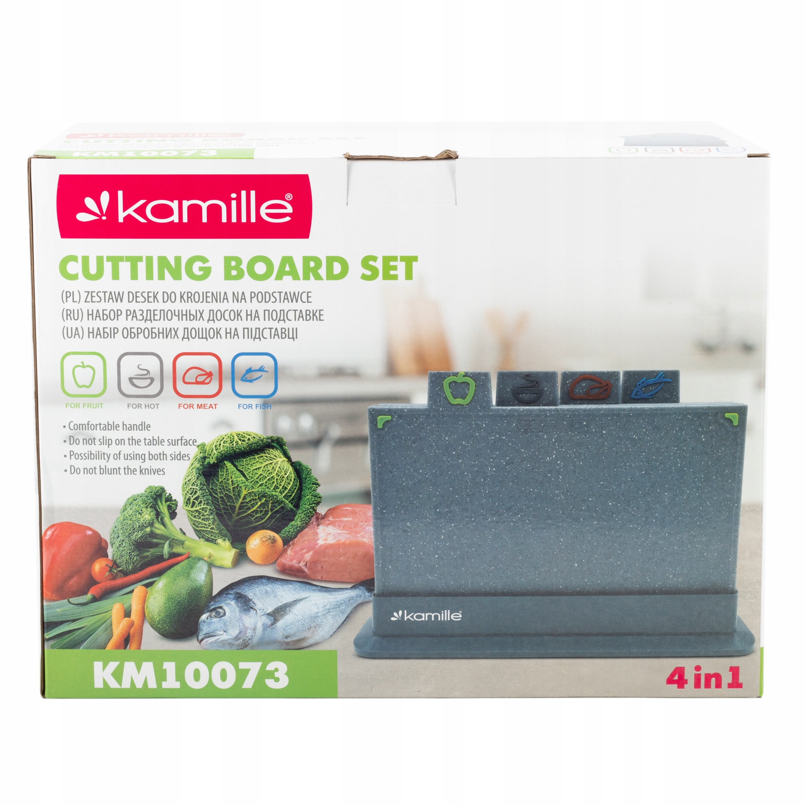 Дошки виготовлені з пластику. Кожна з дощок оснащена поверхнею, придатною для заданого типу продукту, який полегшує рубання та порцію.