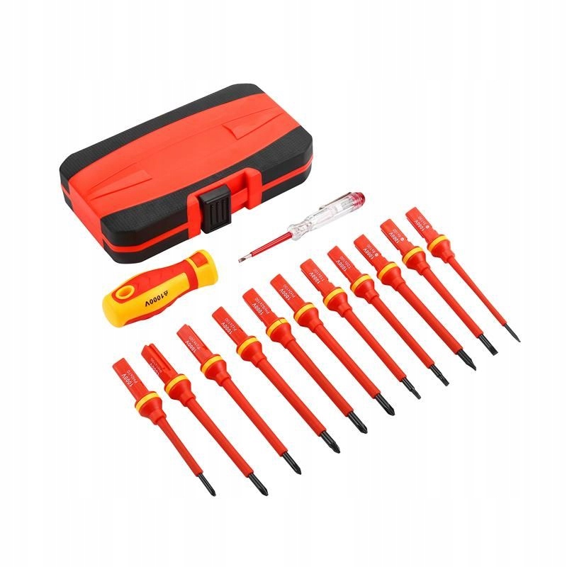 , створений для безпечної роботи з електрики. Інструменти відповідають суворим стандартам VDE/GS, що гарантує повну безпеку та надійність у повсякденному використанні. Технічні дані: - Кількість елементів: 14 штук