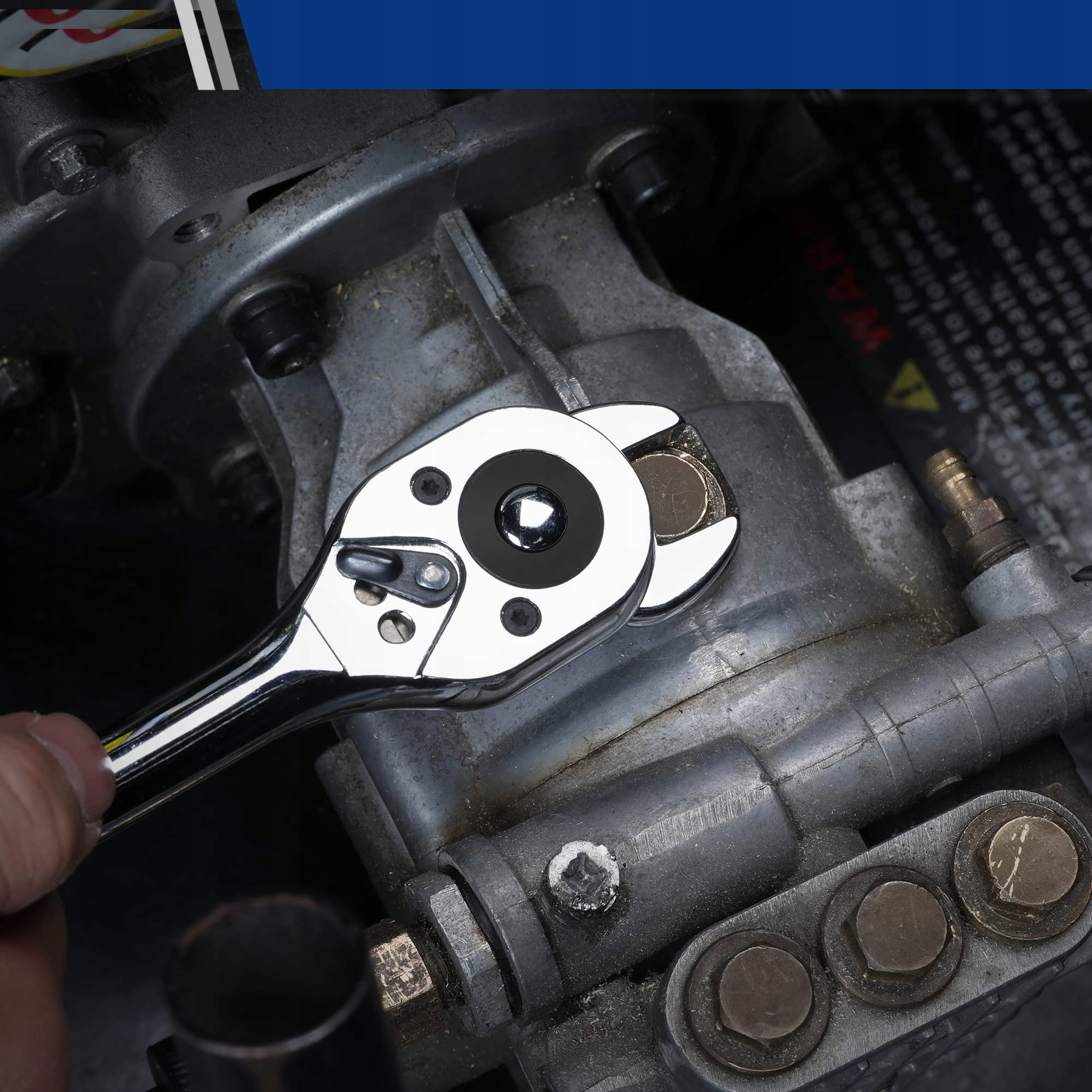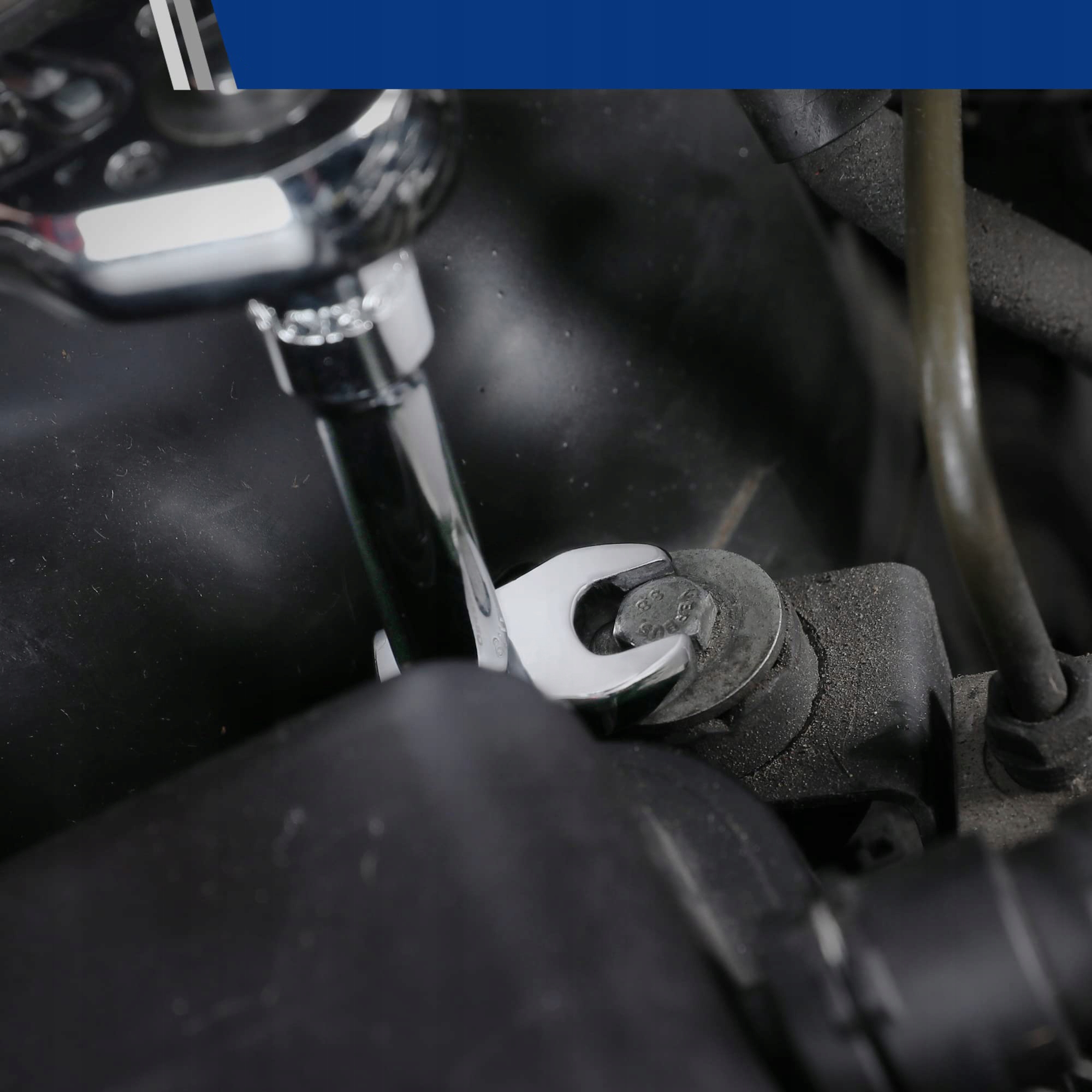 > Досягніть кріплення в твердих -домових місцях, де інші клавіші не підходять. Використовуйте з будь -яким співвідношенням 3/8 дюймів, розширенням або динамометричним ключем.