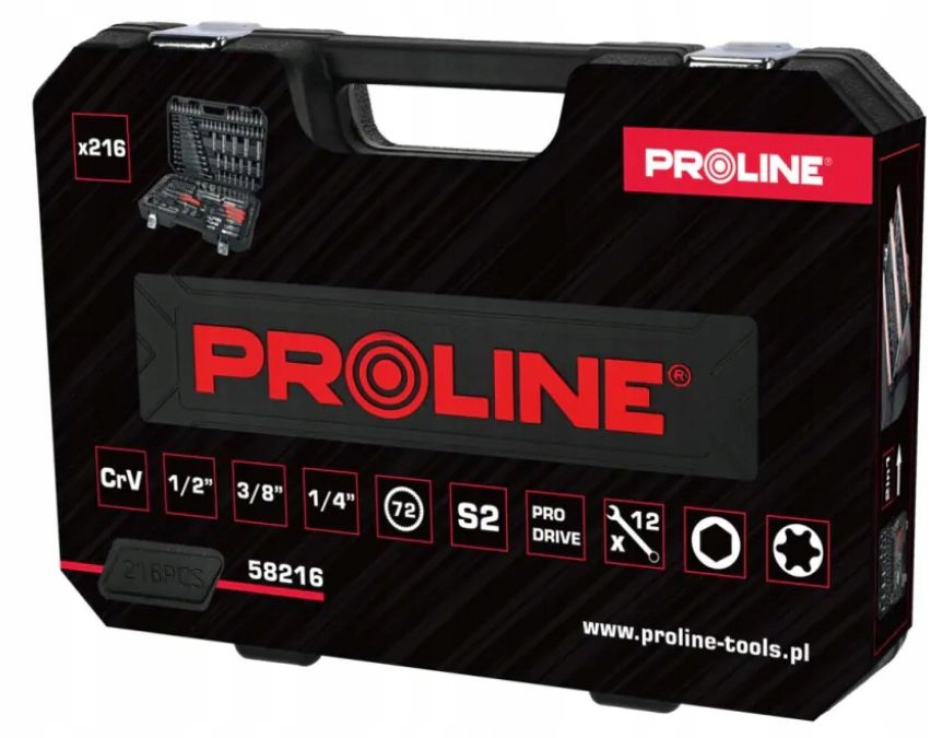 Набір клавіш Proline 58216 - це повний та професійний набір інструментів, ідеально підходить як для професіоналів, так і для вимогливих занять. Він включає аж 216 елементів, включаючи шапки у трьох розмірах (1/2 ", 3/8", 1/4 "), а також обкладинки очей, що робить його надзвичайно універсальним та універсальним інструментом для широкого діапазону завдань.