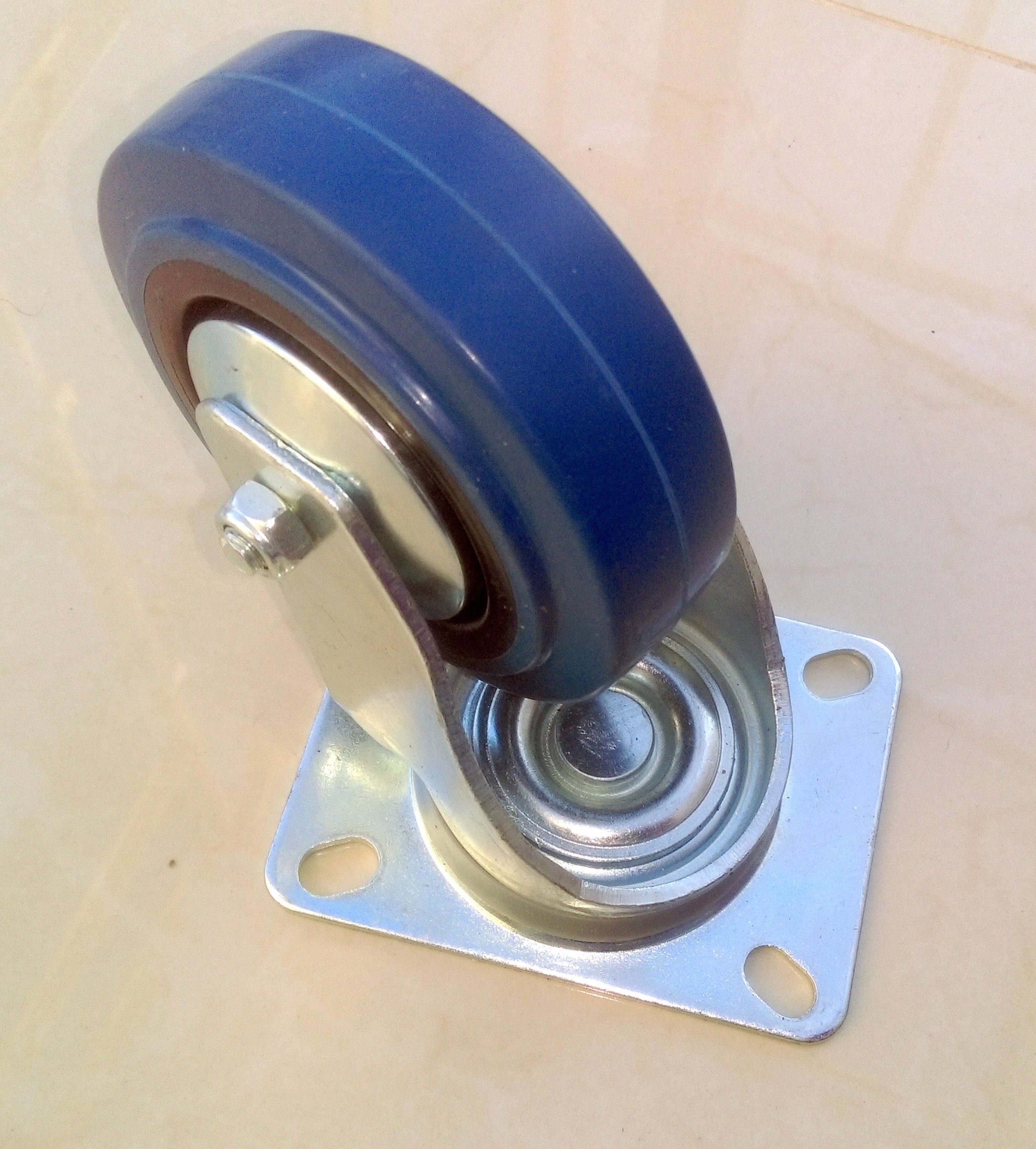 - синій гумовий протектор з винятковою еластичністю, чорне поліамідне колесо поруч із диском