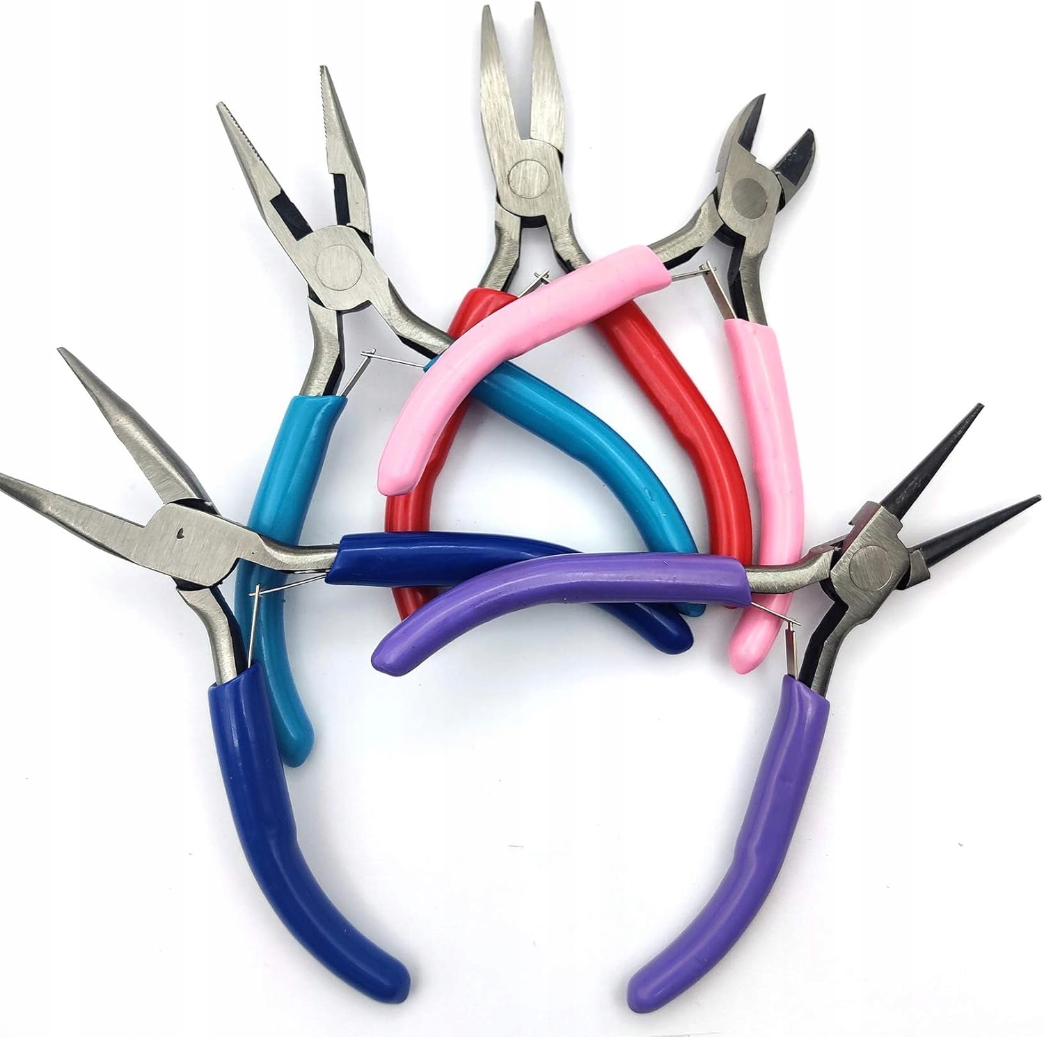 - Вміст упаковки: Набір включає п’ять різних типів кусачок для виготовлення ювелірних виробів: плоскогубці, круглогубці, різаки для дроту, згинальні та плоскі носові плоскогубці. Цей набір ідеально підходить як для початківців, так і для професіоналів, які займаються дизайном і виготовленням ювелірних виробів, у ньому є всі основні інструменти, необхідні для різноманітних технік.