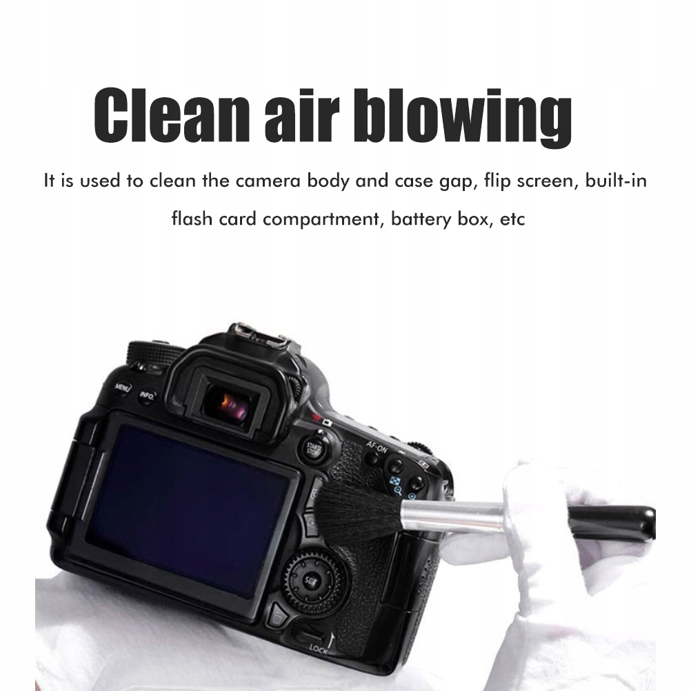 2. Висувна м’яка щітка на одному кінці і зцілив м'яку очисну накладку з іншого; Велика м'яка щітка для видалення пилу з камер або лінз; Для підірвання корпусу камер, лінз, дзеркал або цифрових дзеркал на фолікулах.