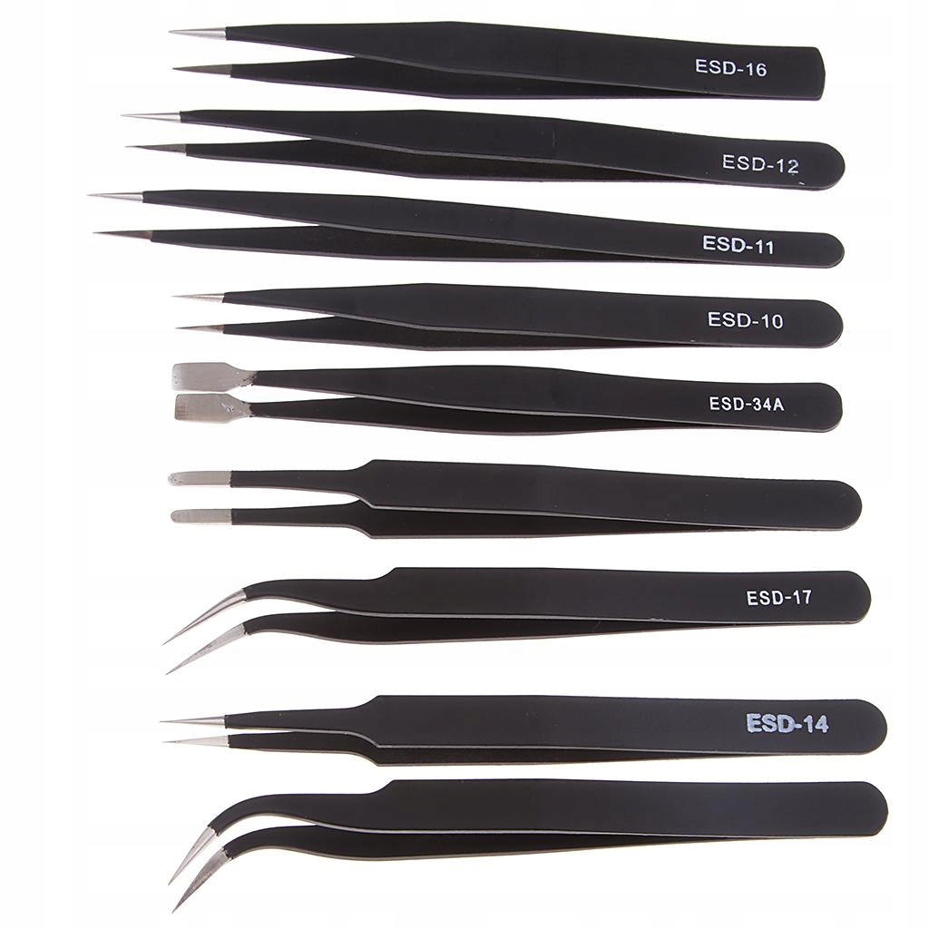 Набір пінцетів із нержавіючої сталі, 9 шт., антистатичні