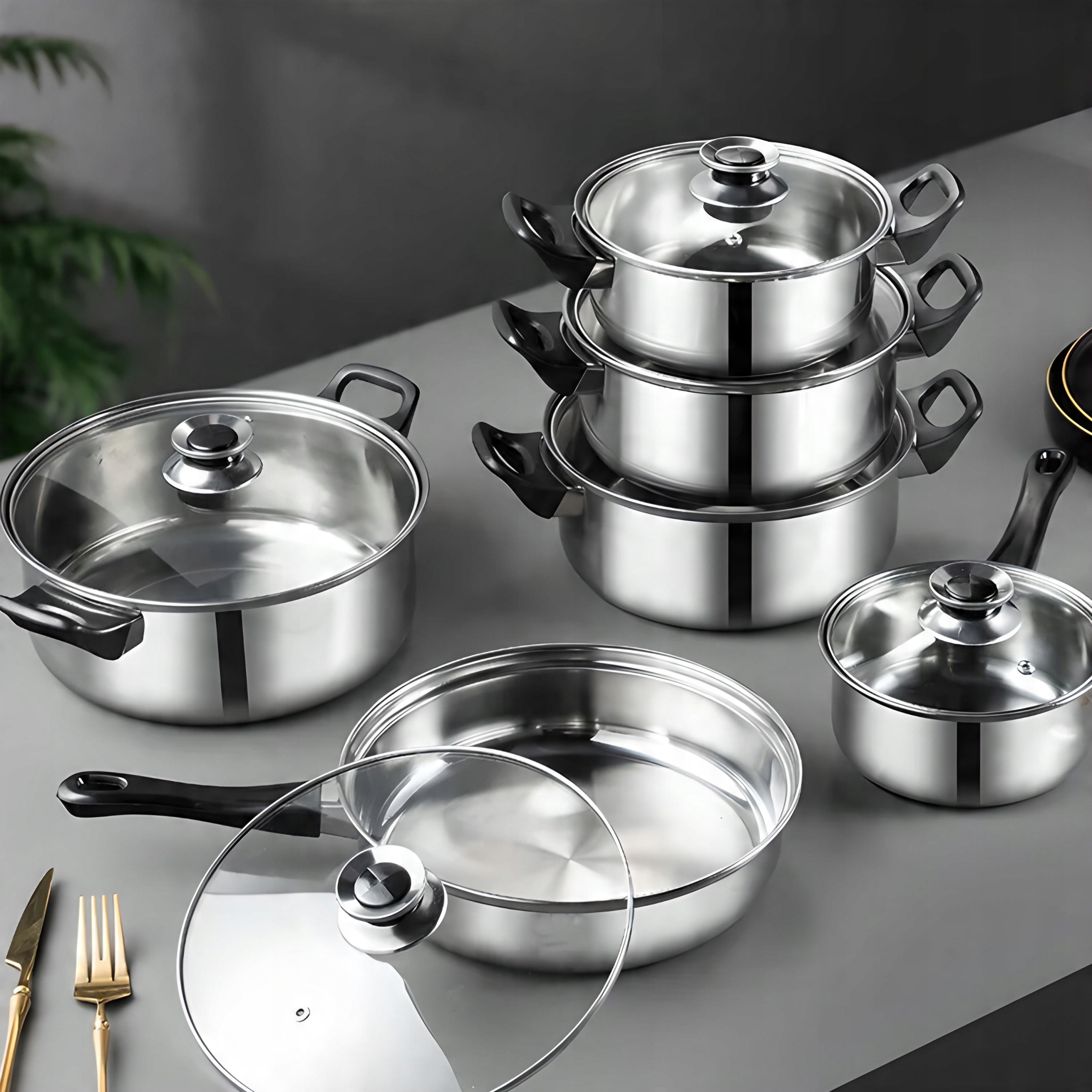- Набір каструль із 12 предметів з нержавіючої сталі