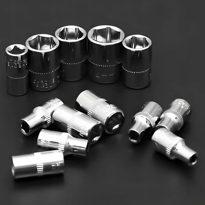 Пристрій дозволяє працювати без руху руки при відкручуванні або затягуванні. Таке рішення значно скорочує час виконання різноманітних робіт за допомогою торцевого ключа. Наш набір містить подовжувач, який дозволяє збільшити силу обертання. Завдяки цьому можна відкрутити навіть туго затиснуті гвинти. Адаптер, який дозволяє пристосувати гніздо до хвостовика, дозволяє використовувати наш гайковий ключ для різних завдань.