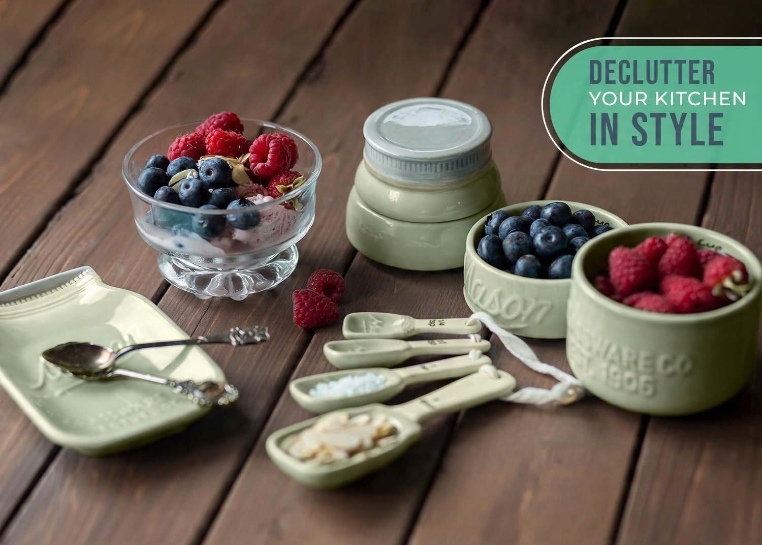 - Набір декоративного посуду – чудовий набір керамічного посуду в вінтажному стилі привабливого кольору, який підходить до різноманітних стилів, зокрема традиційних, шеббі-шик та інші; дуже стильно