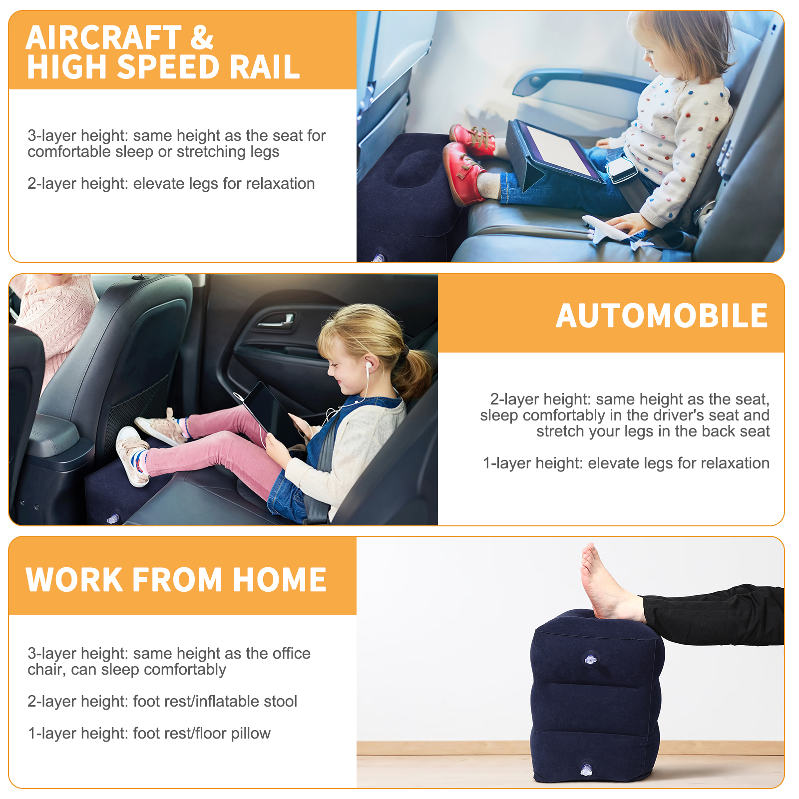 ✅ Надто тривале сидіння на сидіннях може призвести до погіршення кровообігу, оніміння або болю в ногах і стопах. Завдяки нашій подушці для ніг він може ефективно допомогти вам вирішити проблеми. Надувний дизайн робить його портативним, просто спустіть повітря та складіть, щоб було зручно носити під час подорожей.