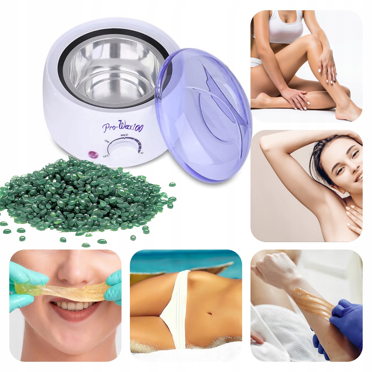 Поставте банку в нагрівач і нагрівайте, поки вона повністю не нагріється. Виставляємо найвищу температуру, підключаємо до джерела живлення, потім загоряється червона лампочка. Через кілька хвилин червона лампочка загориться зеленою - віск готовий до використання. З міркувань безпеки температура не повинна бути занадто високою. Кількість воску, що подається в нагрівач, має бути необхідним. Потім приступаємо до депіляції, перевіряємо, чи не дуже гарячий віск, і шпателем наносимо теплий віск на шкіру. Приклеюємо латку, а потім енергійним рухом відриваємо її по волокну. Після процедури видаліть залишки воску маслом і нанесіть бальзам після депіляції.