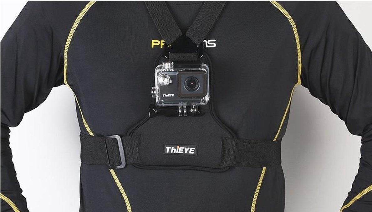 Звичайно, вам не доведеться весь час тримати спортивну камеру. Thieye має приємний асортимент рішень, за допомогою яких можна встановити камеру. У цьому випадку саме груди дозволяють прикріпити спортивну камеру до грудей. Брекети можна безпечно закріпити за допомогою затискача, а гнучкі смуги можна відрегулювати, щоб вони відповідали всім. Ви можете безпечно зануритися, кататися на лижах чи підніматися, не турбуючись про камеру, а тим часом зробіть найкрасивіші фотографії.