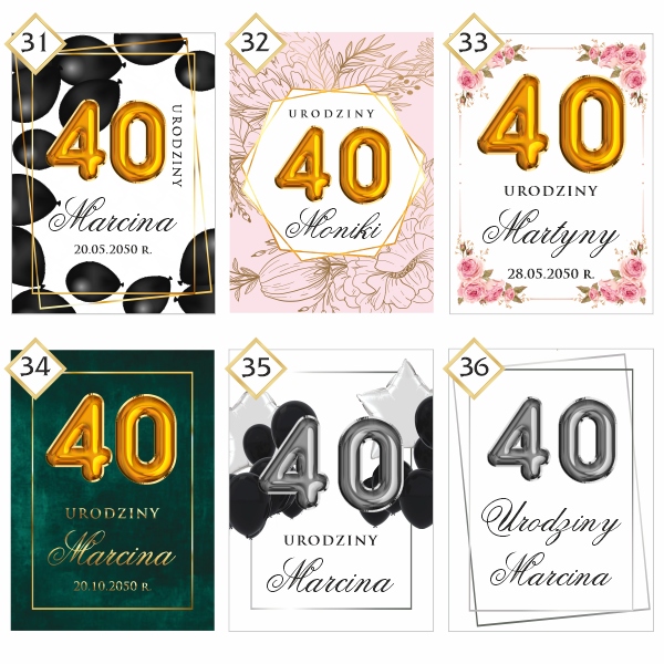 Наклейки цифровим друком на фользі, що гарантує відмінну якість друку та стійкість для охолодження в холодильнику, морозильній камері, холодильній камері тощо, тобто наклейка не плавиться, а відклеюється від пляшки після виймання з морозильної камери та подачі на стіл. Розмір наклейки: 75 х 105 мм. У кожному шаблоні можна додати окрему риму, змінити шрифт, змінити колір шрифту, змінити напис Wódka Urodzinowa, наприклад, на BIMBER день народження, Wino Urodzinowe ... . Якщо у вас є власний дизайн, ми з радістю його вам надрукуємо, це не впливає на додаткові витрати. Ми можемо зробити індивідуальний дизайн БЕЗКОШТОВНО.