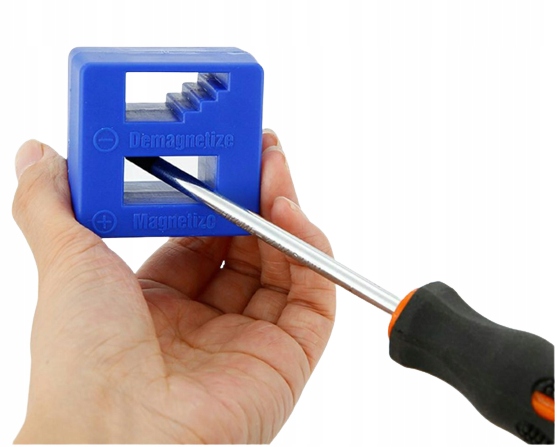 Магнетизатор дозволяє намагнічувати та розмагнічувати викрутки, насадки, ключі та багато інших сталевих елементів та інструментів. Пристрій не потребує живлення. Дуже сильний магніт може допомогти очистити робоче місце, напр. металевих ошурків.