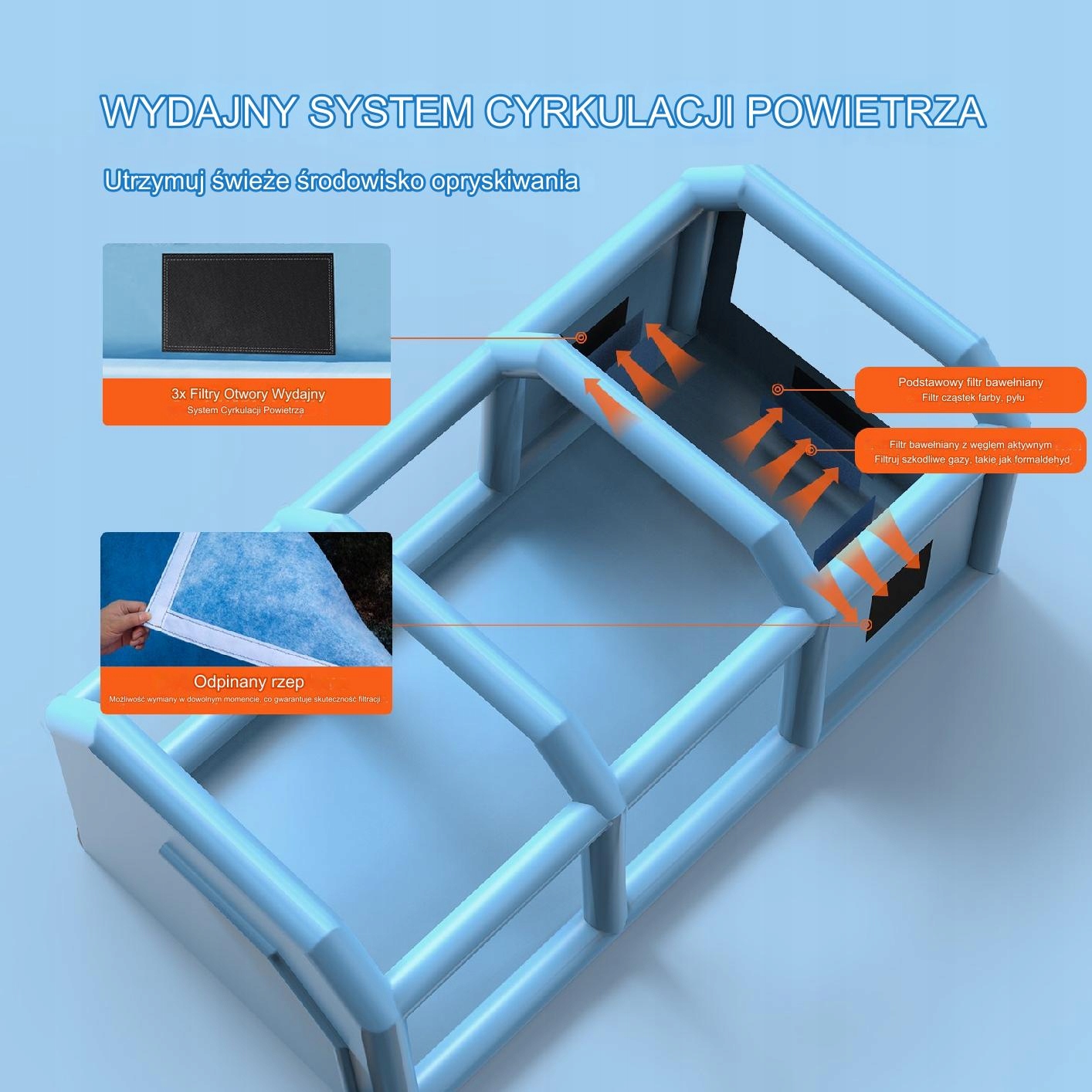 - це інноваційне рішення для всіх, хто потребує мобільного та ефективного простору для фарбування великих транспортних засобів. Він забезпечує чисте та безпечне робоче середовище, захищаючи навколишнє середовище від розпилених частинок фарби. Завдяки швидкій конфігурації та простоті зберігання, пристрій ідеально підходить як для професіоналів, так і для любителів. Ідеально підходить для лакування великих автомобілів, вантажних автомобілів, будинків або інших елементів великих розмірів. Насолоджуйтесь свободою та професійною обробкою за допомогою цієї портативної каюти фарби.