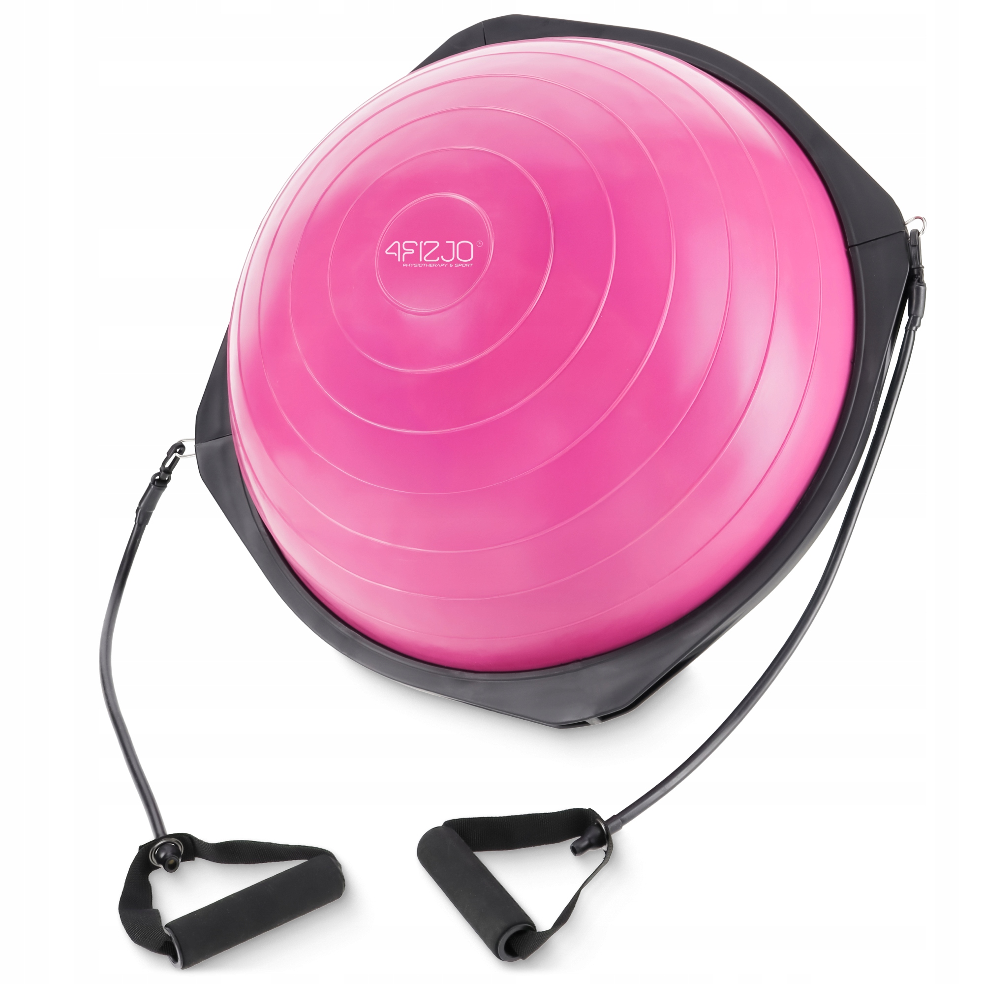 Напівм'яч Balance Ball 4FIZJO являє собою комбінацію половини м'яча для вправ із балансувальною платформою. Ця структура пропонує ряд переваг - обидві сторони дозволяють різноманітне навчання. Напівкруглий купол і основа виготовлені з якісного матеріалу, що забезпечує довговічність. Протиковзкі рішення, такі як ніжки або спеціальні овальні лінії, забезпечують безпеку під час тренування. Захищає від ковзання та запобігає переміщенню м'яча босу під час фізичної активності. У набір для балансування входить 2 знімних еспандера і насос.