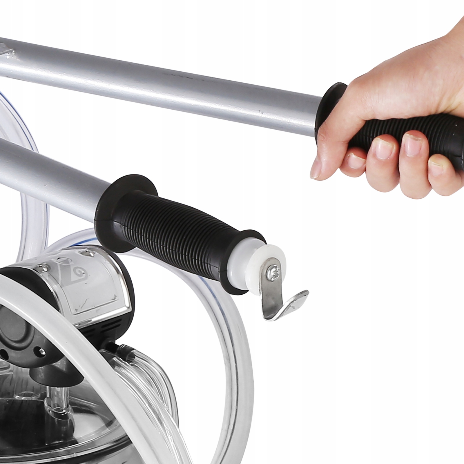 вільні руки: Скажіть Goodbye до незручних сил. Вам не доведеться потіти влітку або заморозити взимку. Потужний двигун 550 Вт, 1680 об / хв. Наша електрична доїльна машина для корів працює 60-80 разів на хвилину, забезпечуючи трудомістке та заощаджувальне доїння. Вакуумний тиск можна регулювати в діапазоні від 45 до 50 кПа. Молочні чашки виготовлені з силікону і мають гладку внутрішню поверхню, яка забезпечує корів комфортним масажем, не завдаючи пошкоджень. Це викликає менший стрес для корів та більшого виробництва молока для вас.