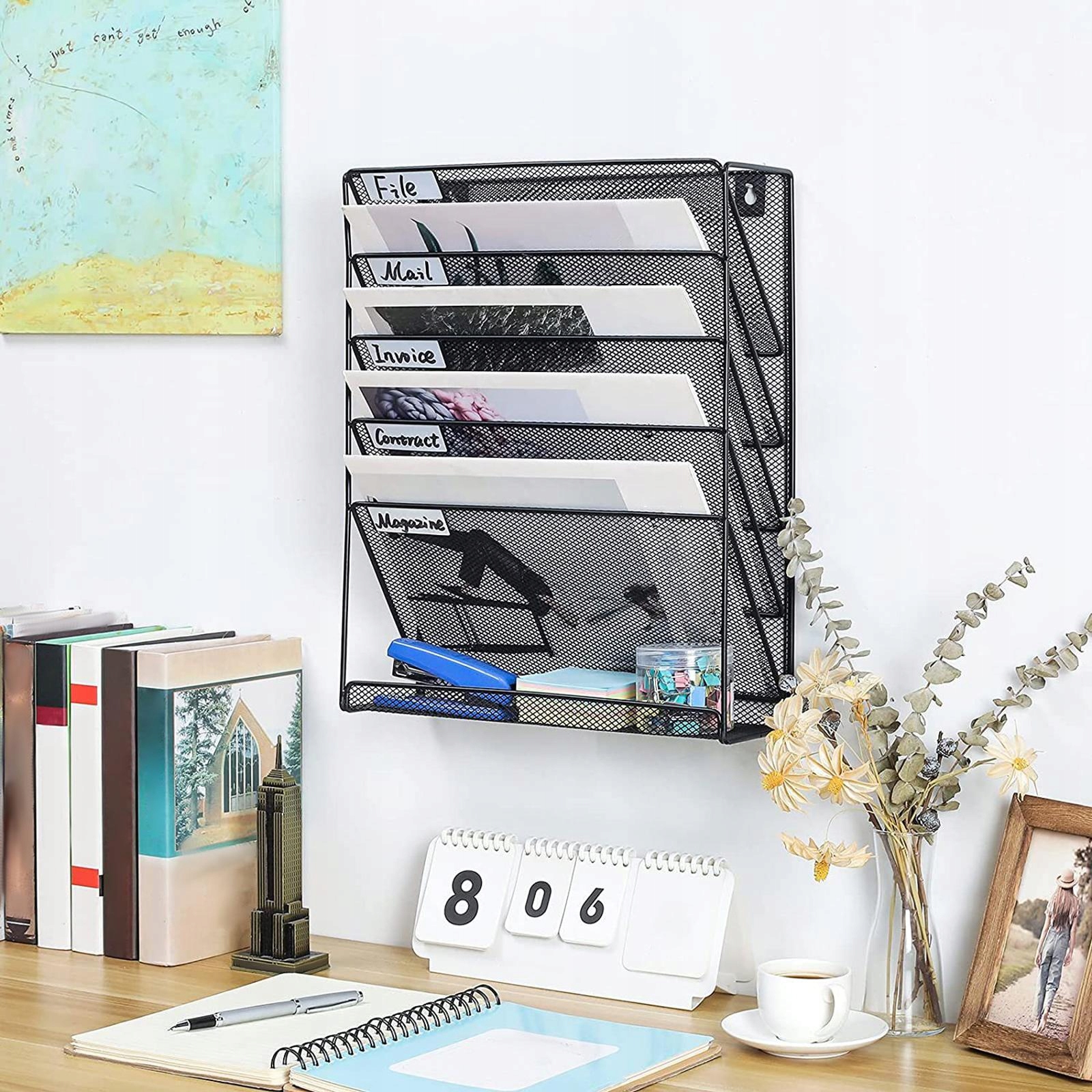 [Настінна підставка для документів]: 5-ярусна для сортування документів, максимального збільшення вертикального простору та підтримки порядку на вашому столі.