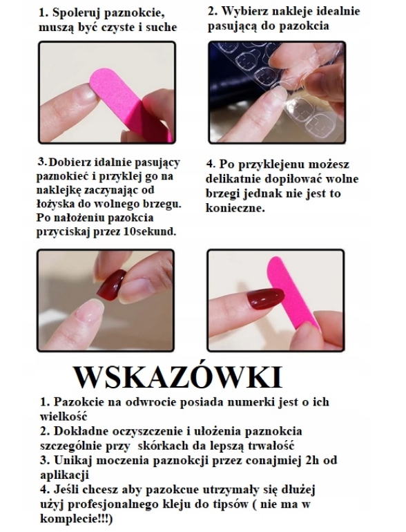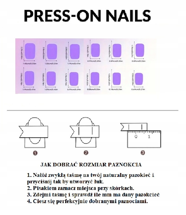 У упаковці ви знайдете 24 цвяхи в 12 розмірах, наклейка (подвійна стрічка, щоб приклеїти нігтя) та міні -файл