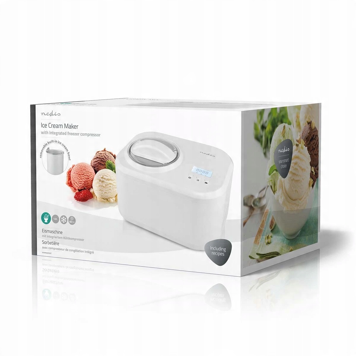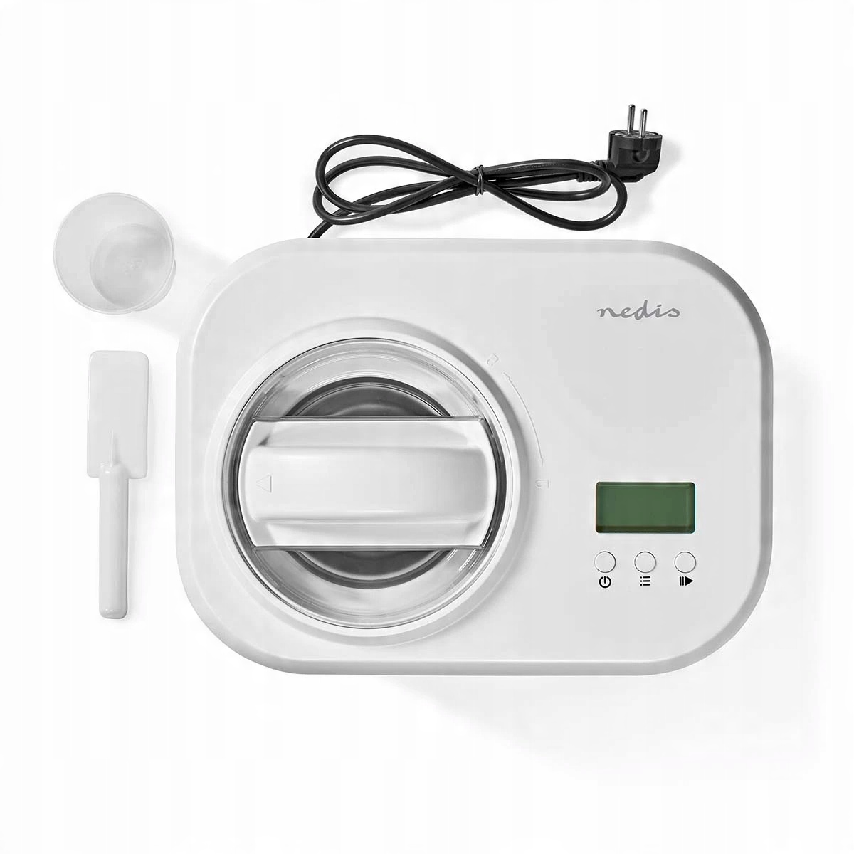 Завдяки цій машині морозива Nedis ви можете швидко і легко зробити власне смачне морозиво. Щоб приготувати найкраще морозиво, вам не потрібно бути професійним шеф -кухарем, оскільки цей пристрій буде виконувати його для вас. Машина морозива працює повністю автоматично і має вбудований компресор морозильної камери.