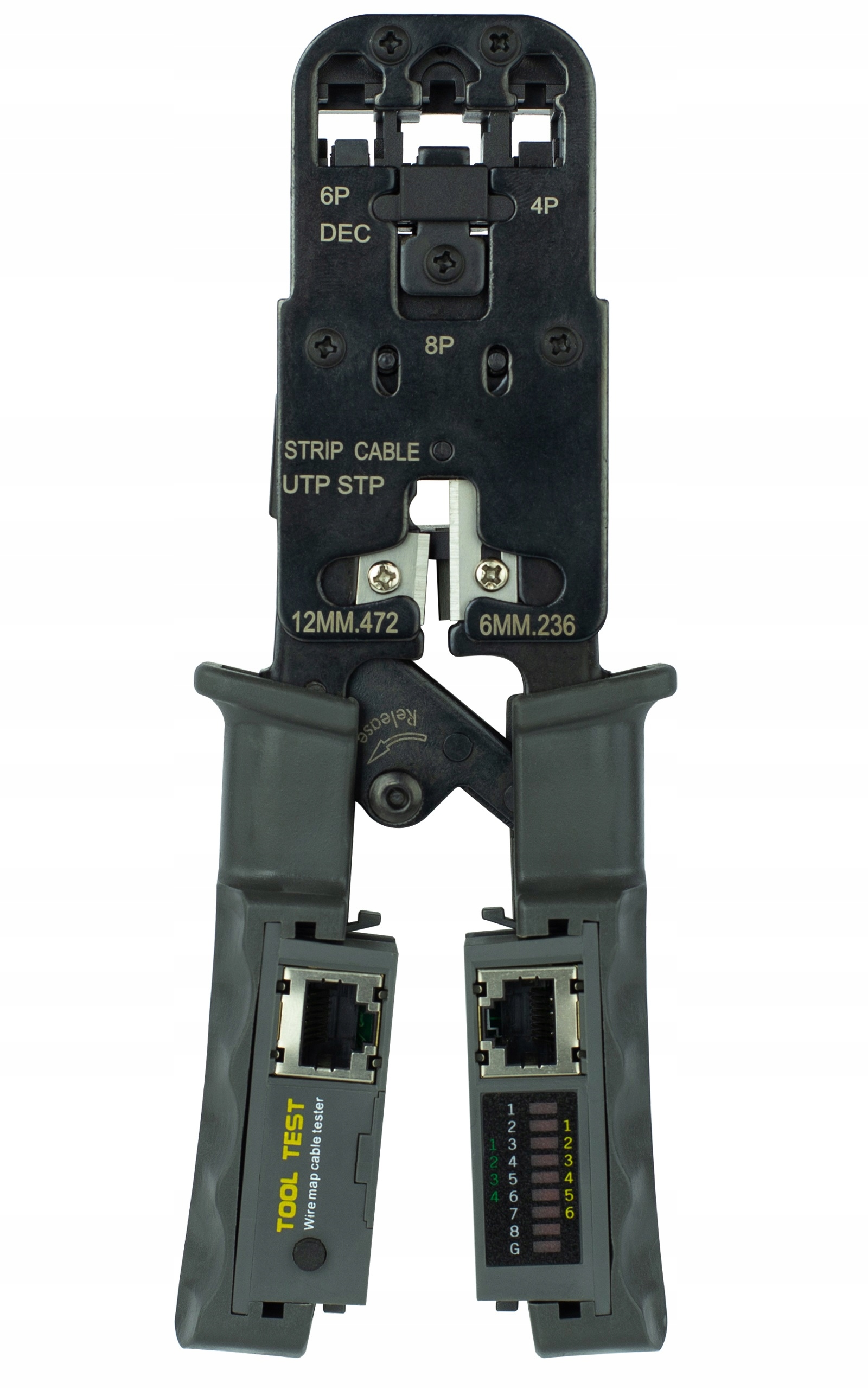 Професійна модульна затискача для затискача на кабелі комп'ютерних штекерів 8 штифтів (rj45) та телефонних штеках 6 і 4 -контакт (rj12, rj12, rj12, rj11). 4 Ftp з можливістю відключення від затискача.