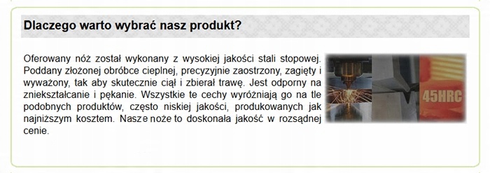 Оплачивая «Ніж косарки 53 см McCulloch M53 M553 MBO026 MM53», вы можете быть уверены, что данное изделие из каталога «Ножи» будет доставлено из Польши и проверено на целостность. В цене товара, указанной на сайте, учтена доставка из Польши. Внимание!!! Товары для Евросоюза, согласно законодательству стран Евросоюза, могут отличаться упаковкой или наполнением.