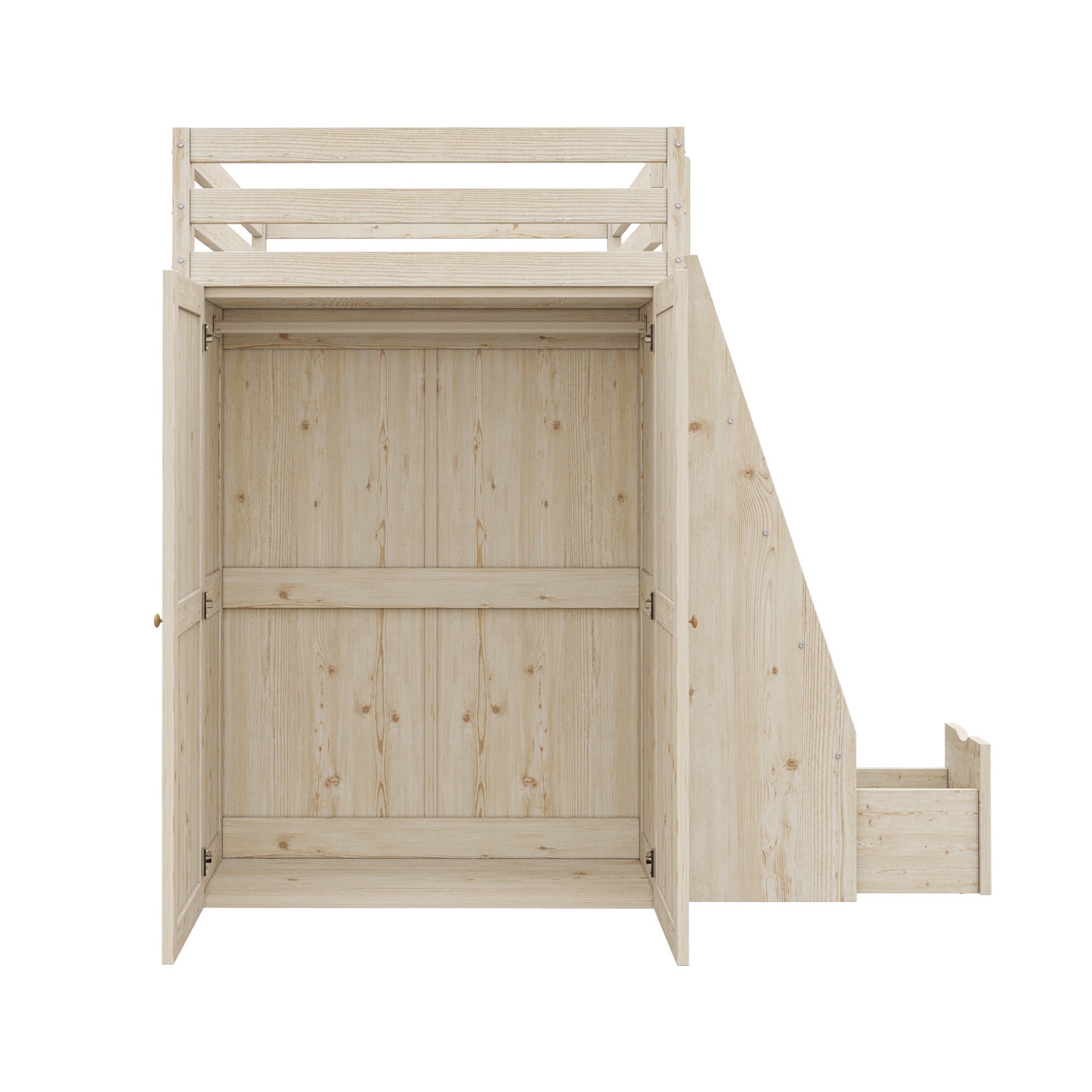 Ліжко-горище 90*200 см з безпечною драбиною для зберігання речей і шафою для зберігання речей Односпальне ліжко Підліткове ліжко Дитяче ліжко Каркас з масиву дерева