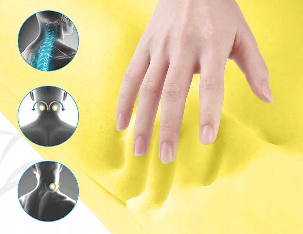 Подушка знімає головний біль і біль у шиї завдяки спеціальним сердечникам з термопластичної піни, ефективно розвантажує зв'язки і суглоби. Дружній до шкіри. Забезпечує захист від бактерій, мікроорганізмів і кліщів. В’язкопружні клітини активно адаптуються до форми вашого тіла