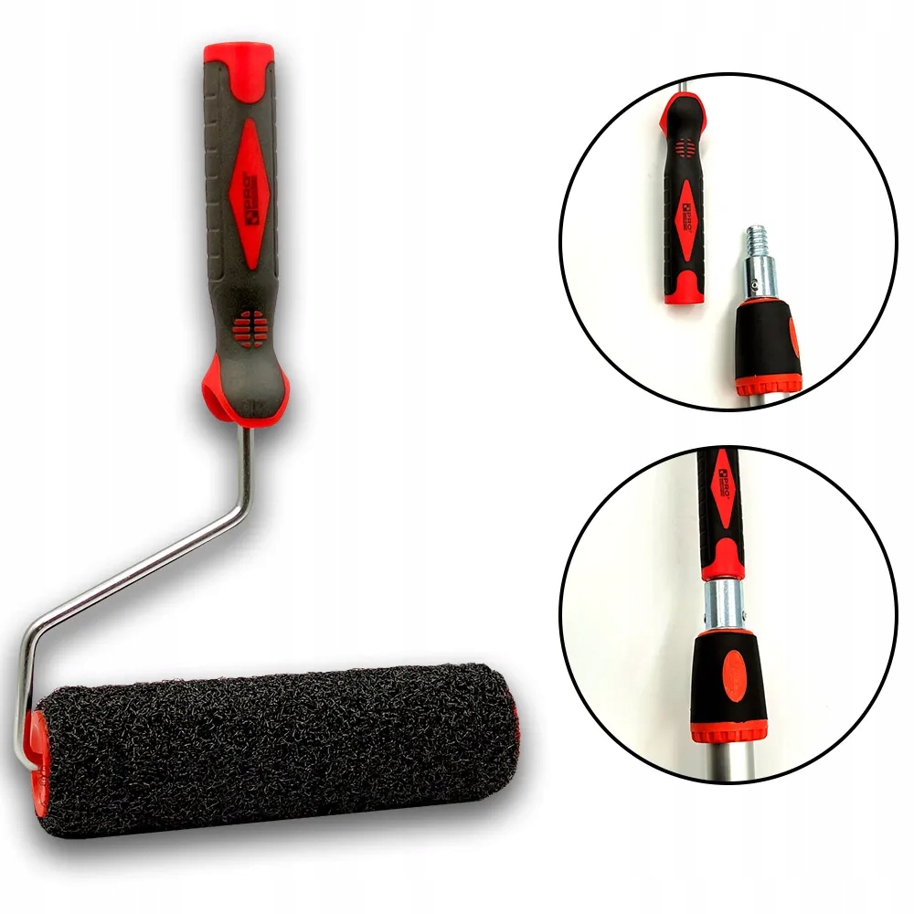 Крім того, валик можна легко встановити на телескопічній палиці з набору Pro Fadhamayer, що дозволяє зручно застосувати пальто до більш високих частин стін та стелі. Перед першим використанням валик повинен бути склеєний клейкою стрічкою для усунення пухких волокон.