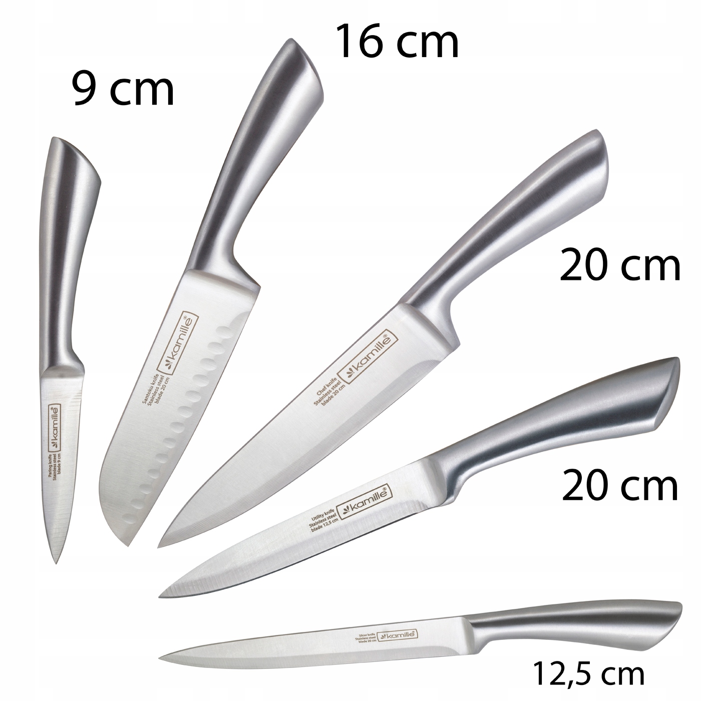Естетичний і класичний вигляд Кухонні ножі KAMILLE необхідні на кожній кухні. Леза з високоякісної благородної нержавіючої сталі, дуже довгий термін служби та надзвичайно зручні ручки гарантують, що ви не відійдете від кухонної стійки.