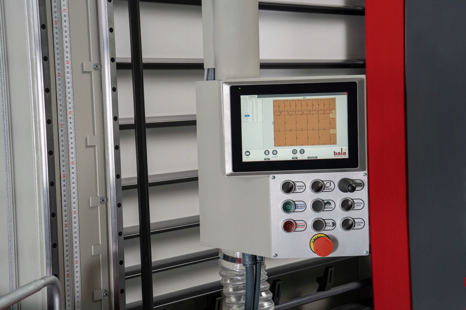 Цифрові показання та дисплеї для горизонтального позиціонування каретки пилки та вертикального позиціонування панелі виготовляється без втручання людини, щоб звести до мінімуму виробничі помилки.