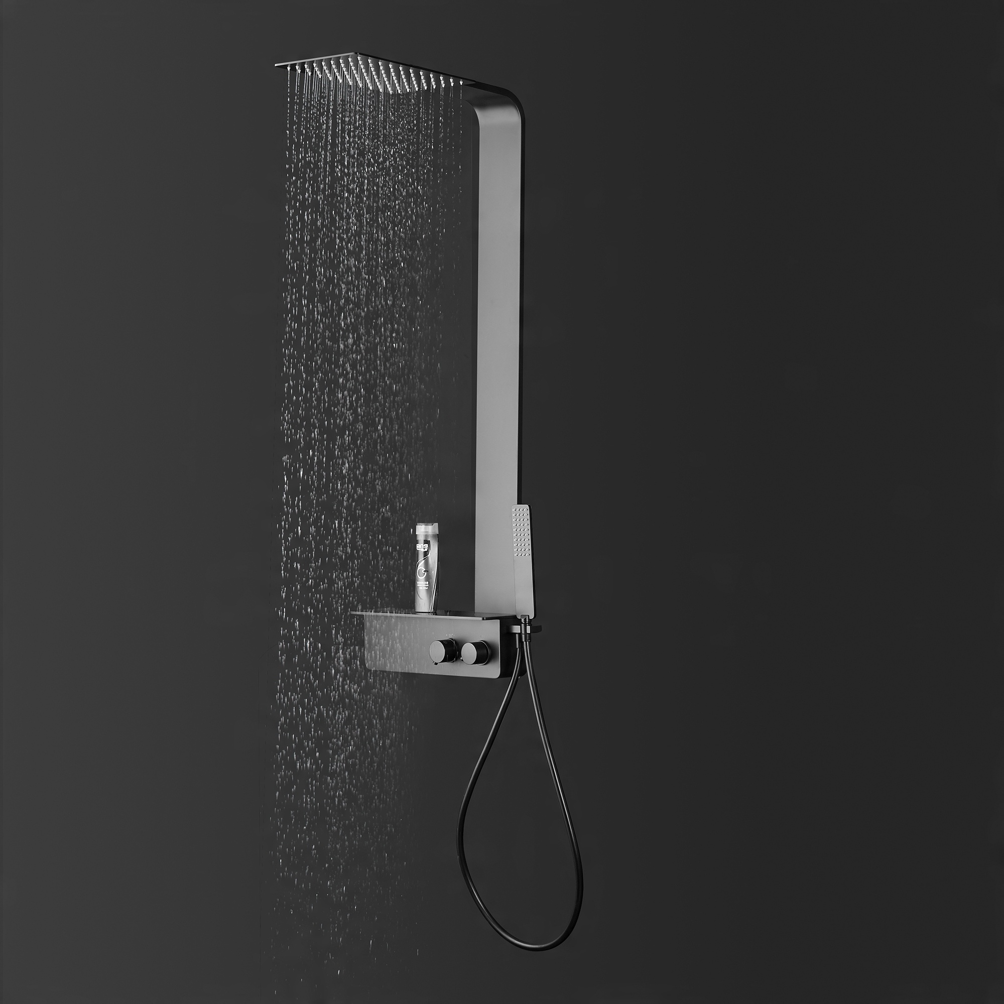 Дизайнерська душова система NT038 Pro з нержавіючої сталі з терморегулятором, душовою трубкою та матово-чорним душовим шлангом