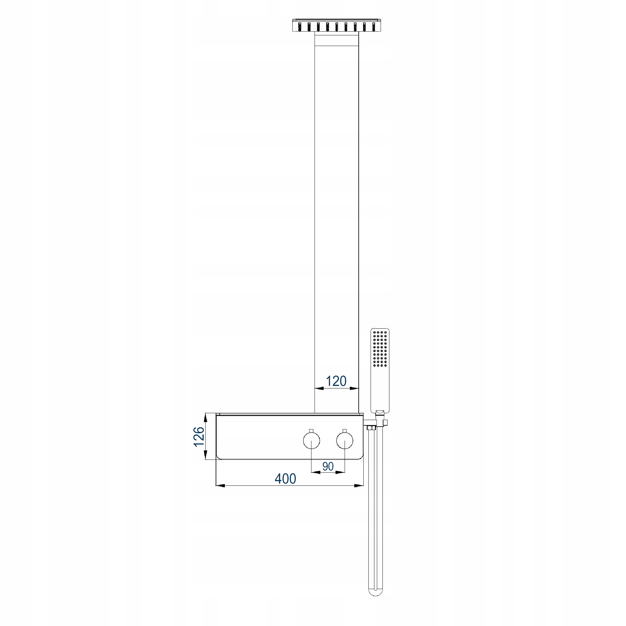 Над ручками для керування душовою арматурою є практична полиця для шампунів і гелів для душу.