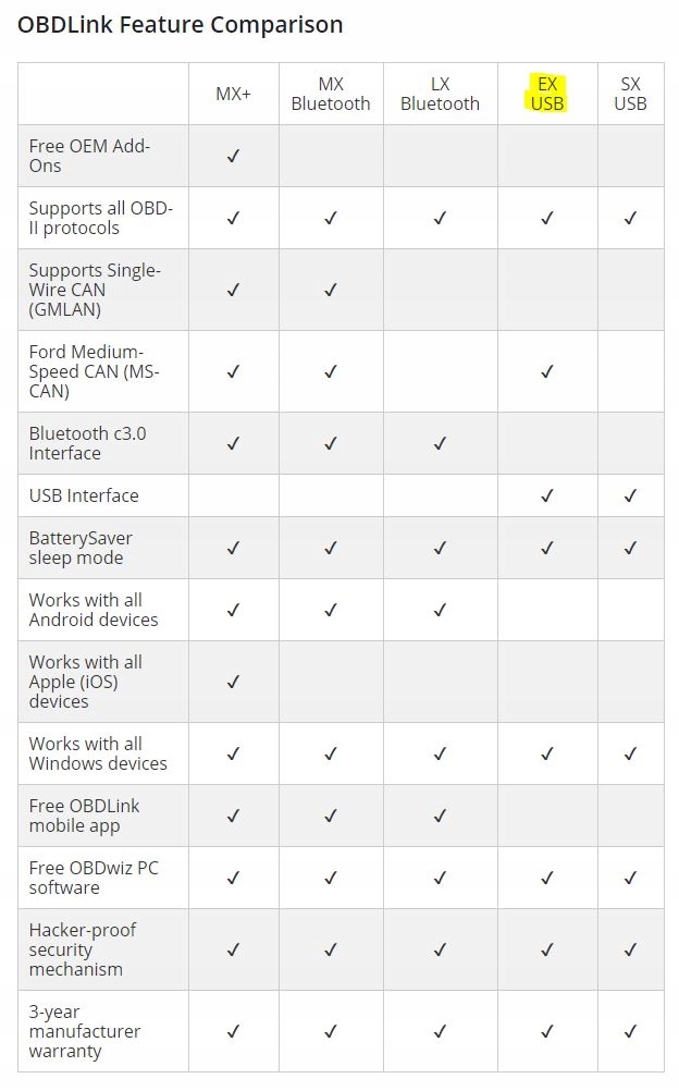 OBDLink EX рекомендовано розробниками FORScan через її надійність, велику пропускну здатність і підтримку всіх протоколів Ford.