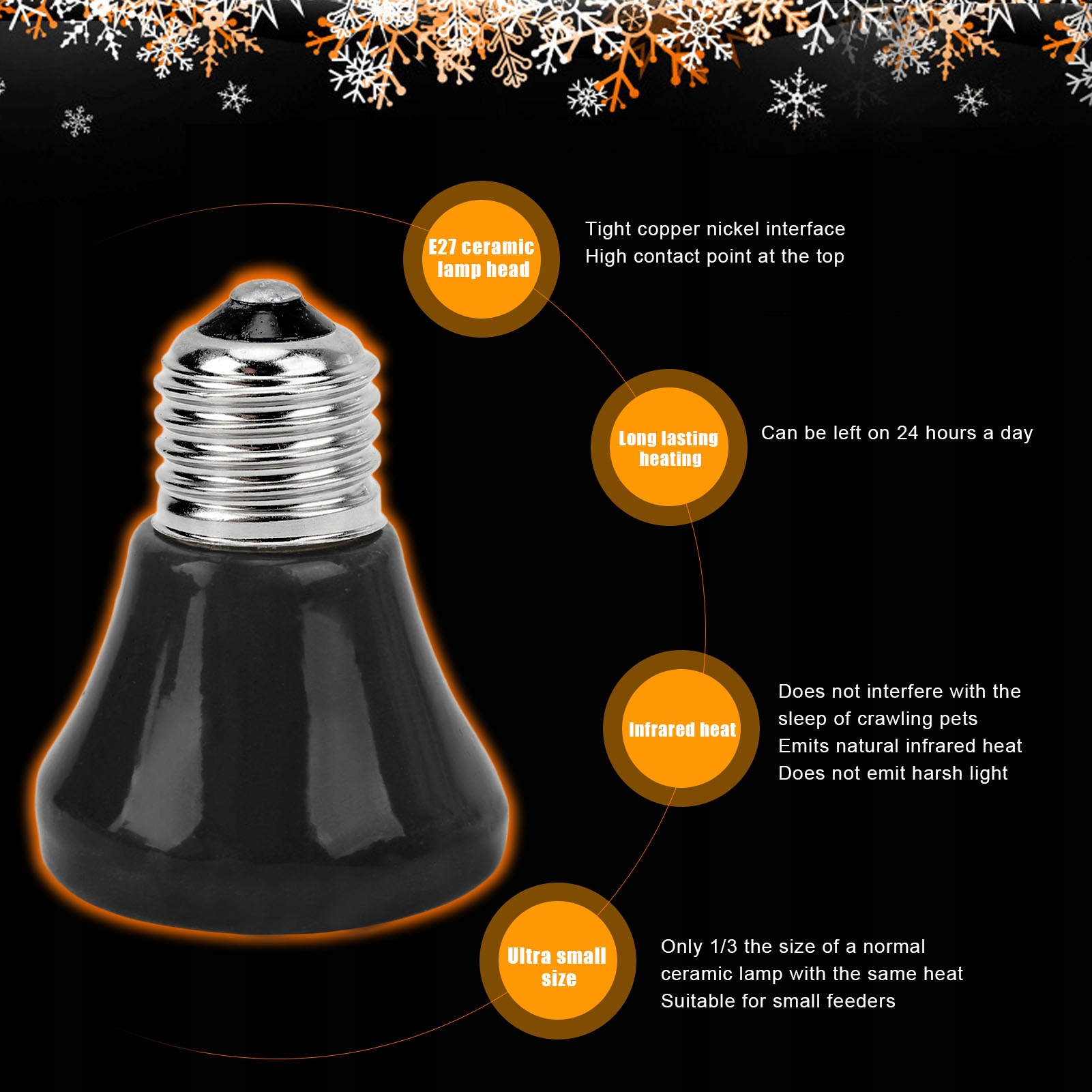 1. Відсутність світла: керамічна нагрівальна лампа для рептилій, яка лише зігріває, не світить, не впливає на сон рептилій, придатних для невеликих розмножувальних кабінок.