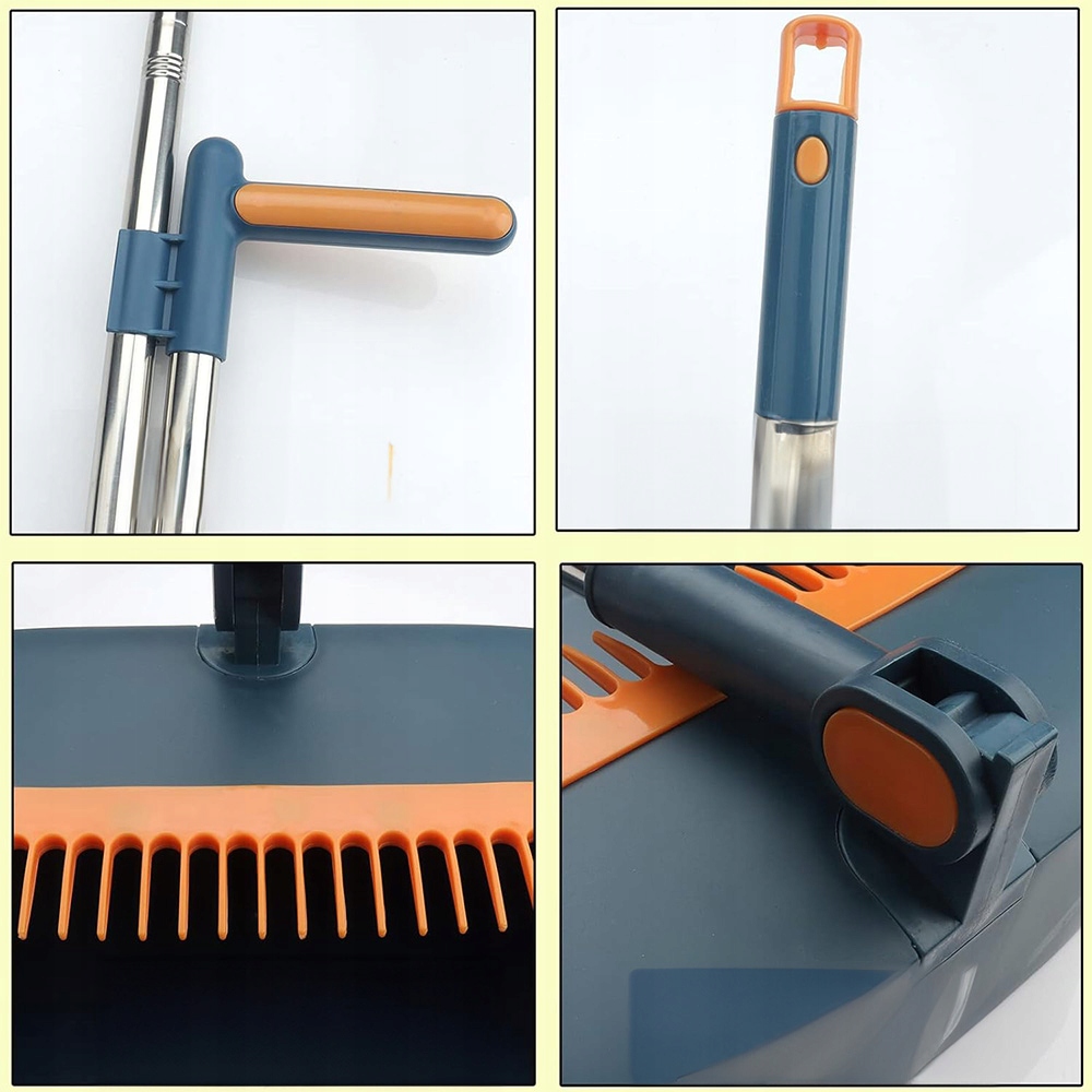 вбудовані -в зубах гребінця, ви можете легко вискочити волосся та бруд від мітла до совок, не торкаючись мітли руками, щоб зберегти гігієну руки. Крім того, совок має гумову структуру, а дно може дуже добре прилипати до підлоги, тому не хвилюйтеся, що пил буде прокотиться під ящик або не потрапляти всередину.