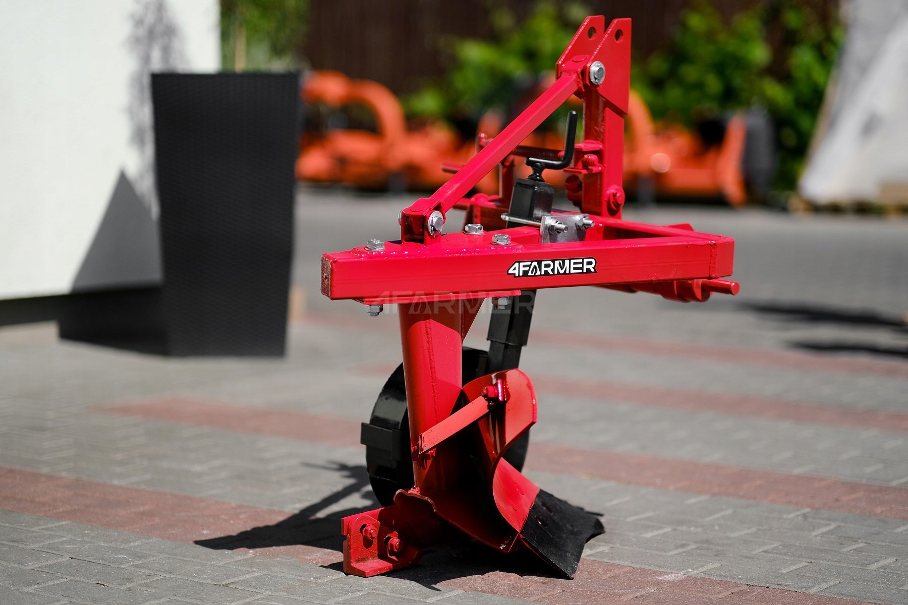 Одноокуловий плуг 4farmer -це плуг, який складається з лемпера, slłupica і родовища та кола підтримки, і це плуг , який висить у трактор на 3-кратному гачку kat і . Червоний 4farmer Plow - регульований плуг бічний, що дозволяє переміщувати горизонтальний плуг відносно осі трактора, поздовжнього регулювання і має регульовану висоту положення опорного колеса.