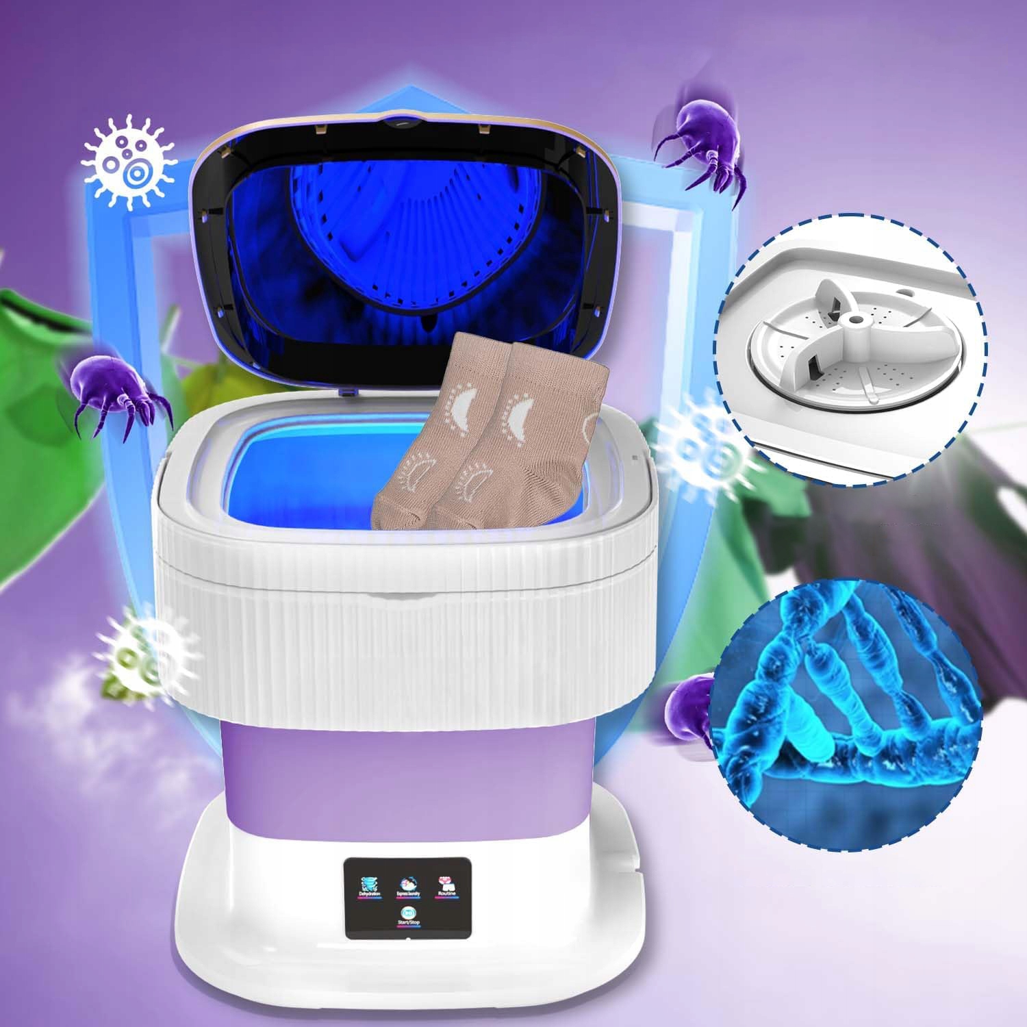 🏡 - Складна та портативна конструкція цієї пральної машини полегшує її використання. Його можна використовувати як пральну машину для подорожей, пральну машину для кемпінгу, портативну домашню пральну машину, пральну машину для білизни, пральну машину для шкарпеток або пральну машину для дітей.