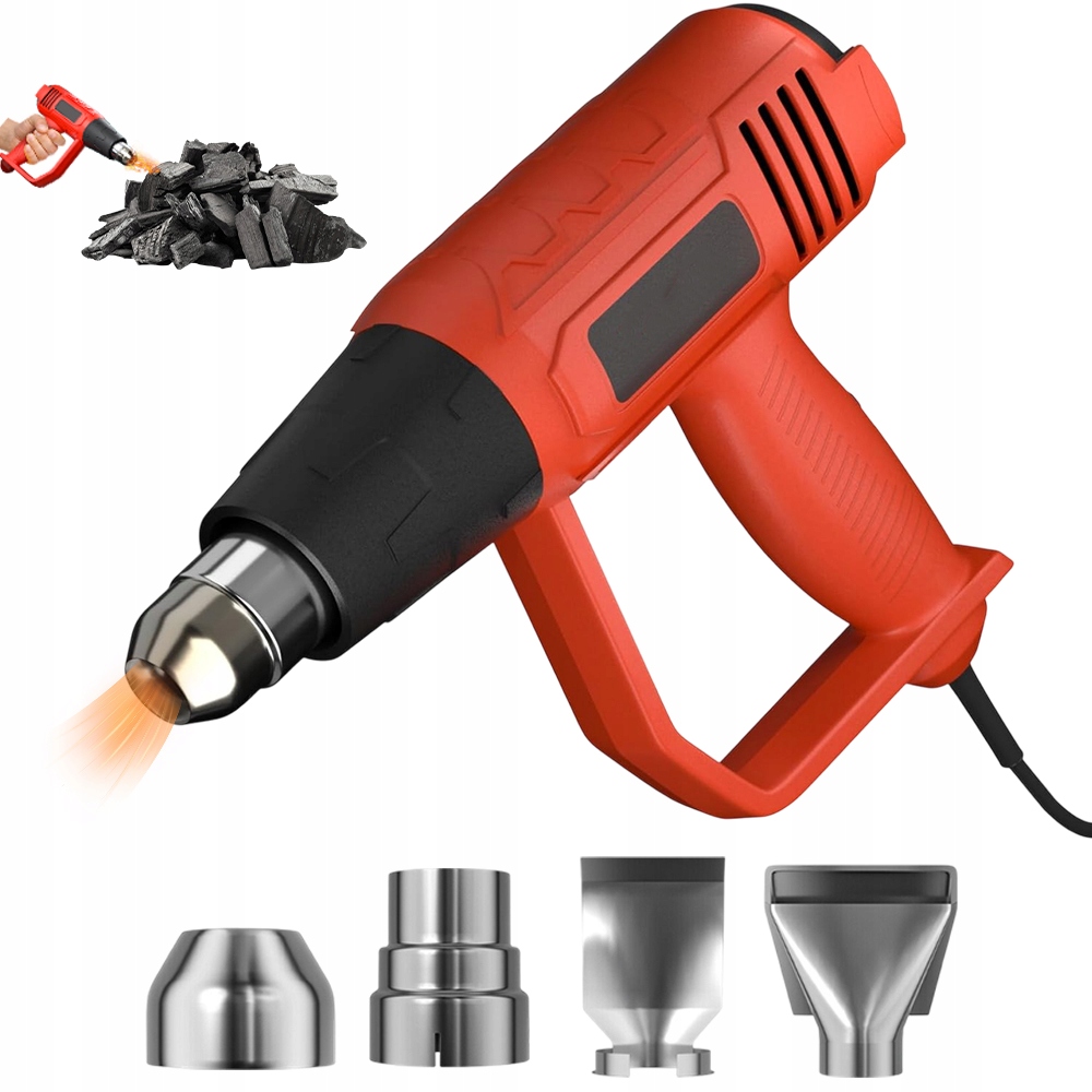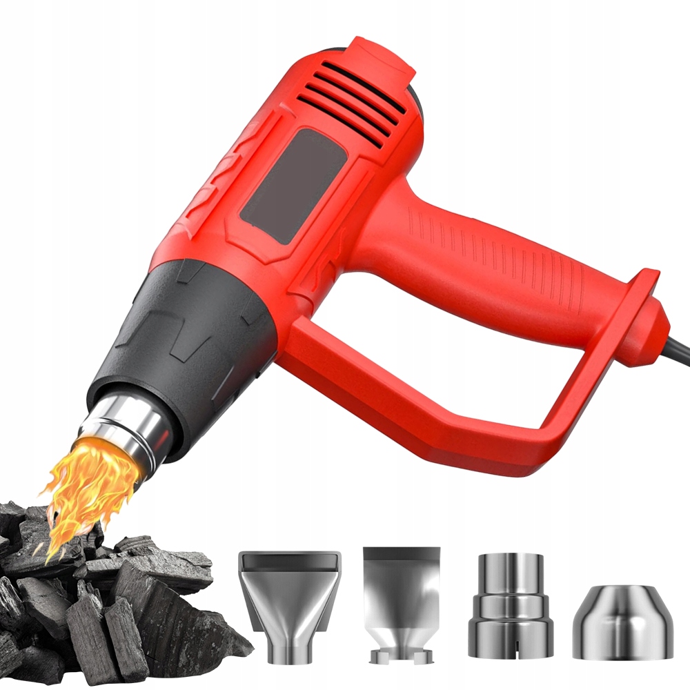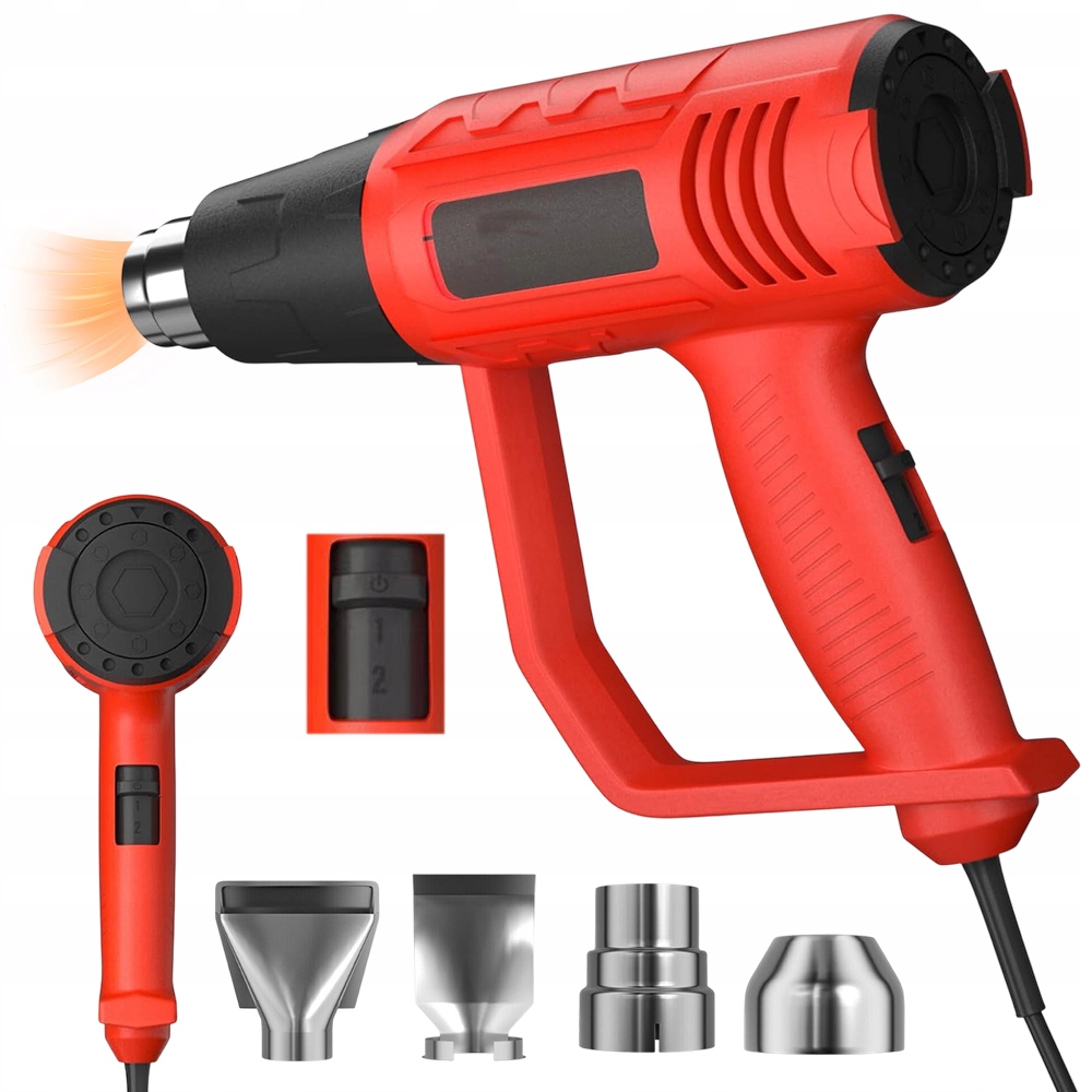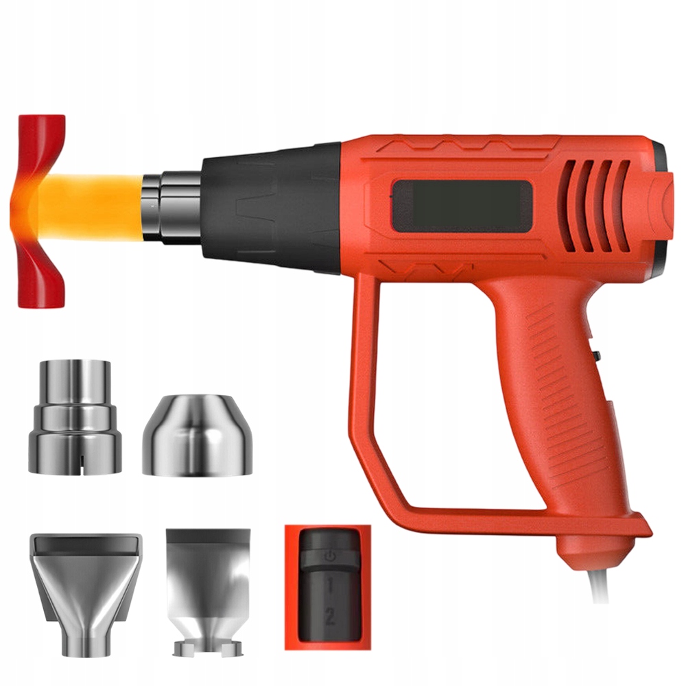 Інструмент оснащений чотирма важливими аксесуарами: великою насадкою нахилу, насадкою для зменшення, невеликою насадкою нахилу та відбиваючою насадкою, завдяки якій вона підходить для різних завдань, таких як догляд за автомобілями, ремонт електричного ланцюга, видалення фарб, роздуття та упаковка фольгової фолі.