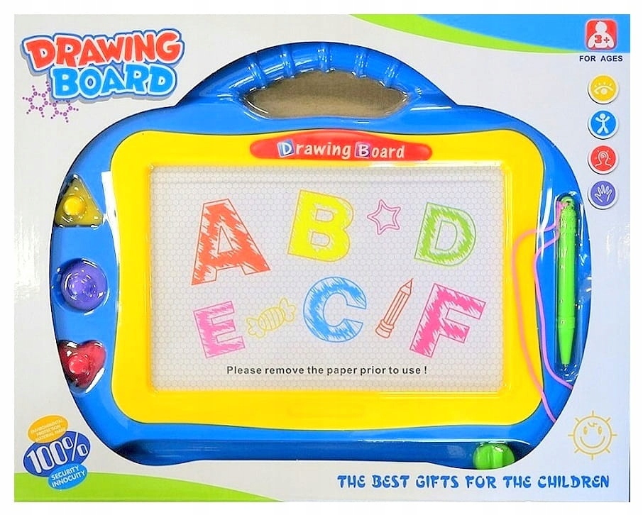 Дошка має зручну ручку, тому дитина може брати її, куди забажає.