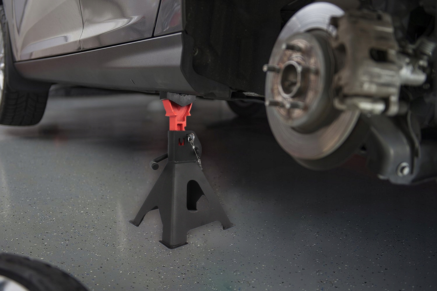 Спеціальний додатковий замок у вигляді штифта захищає храповий механізм від мимовільного опускання опорної колони. Штифт оснащений сталевим тросом, прикріпленим до корпусу естакади, який захищає його від втрати.