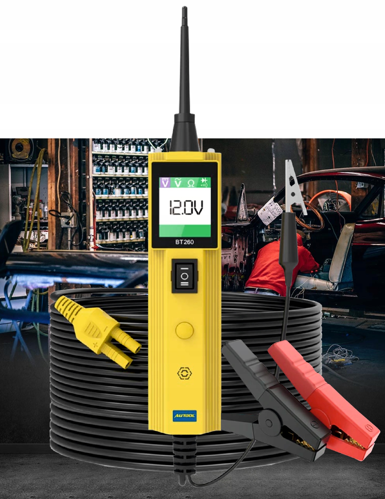 Предметом пропозиції є тестер ланцюгів Autool BT260 з функцією мультиметра (V). Він має вбудований тестер реле, датчик короткого замикання та відсутності, маси, відсутності безперервності ланцюга тощо.