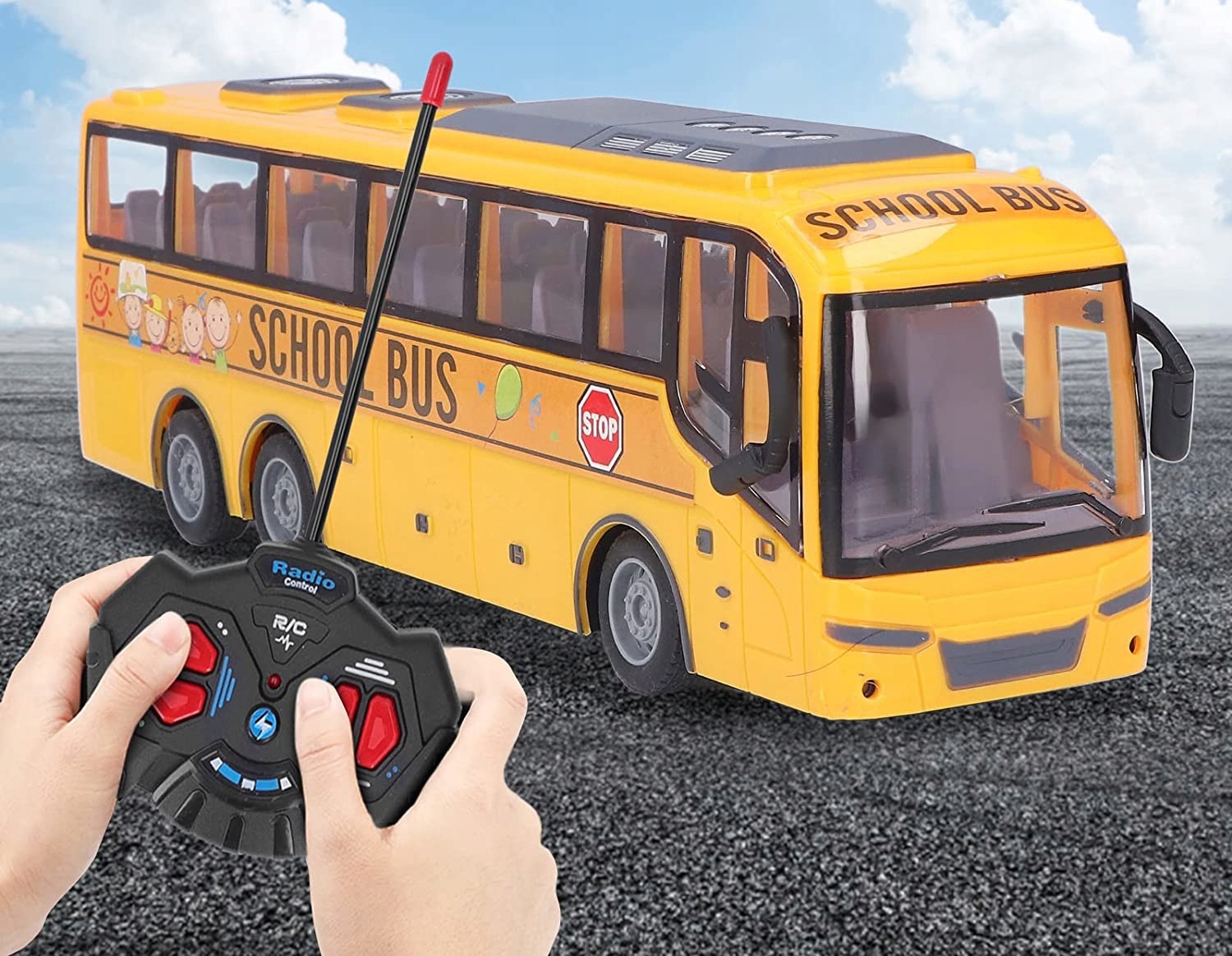 Шкільний автобус дуже ефективно пересувається гладкими поверхнями завдяки своїм гумовим колесам. А головне, він не впаде і не подряпає підлогу під час гри!