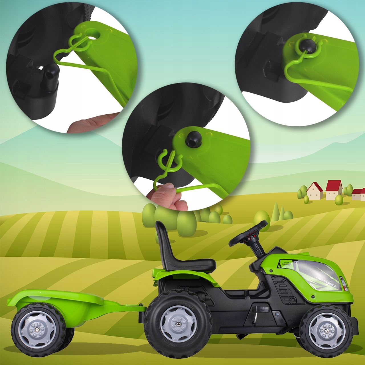 ВЕЛИКИЙ ПЕДАЛЬНИЙ ТРАКТОР З ПРИЧЕПОМ